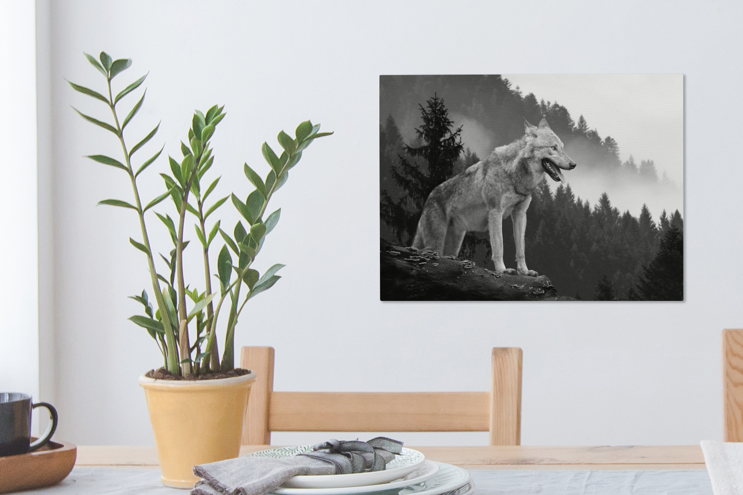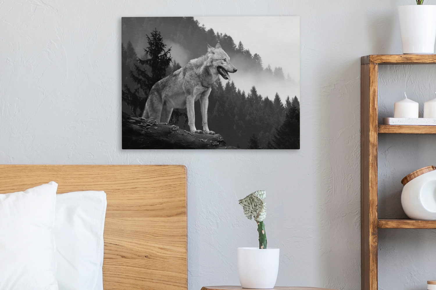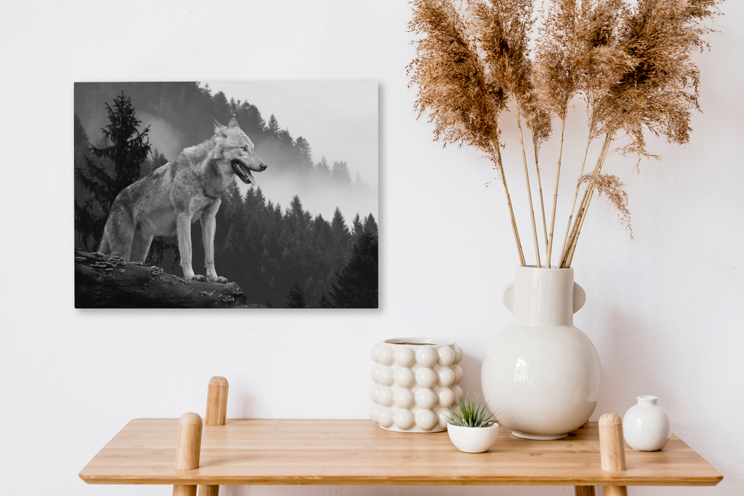 Tableau sur toile Loup - Forêt - Noir - Blanc Decoration murale 40x30 cm