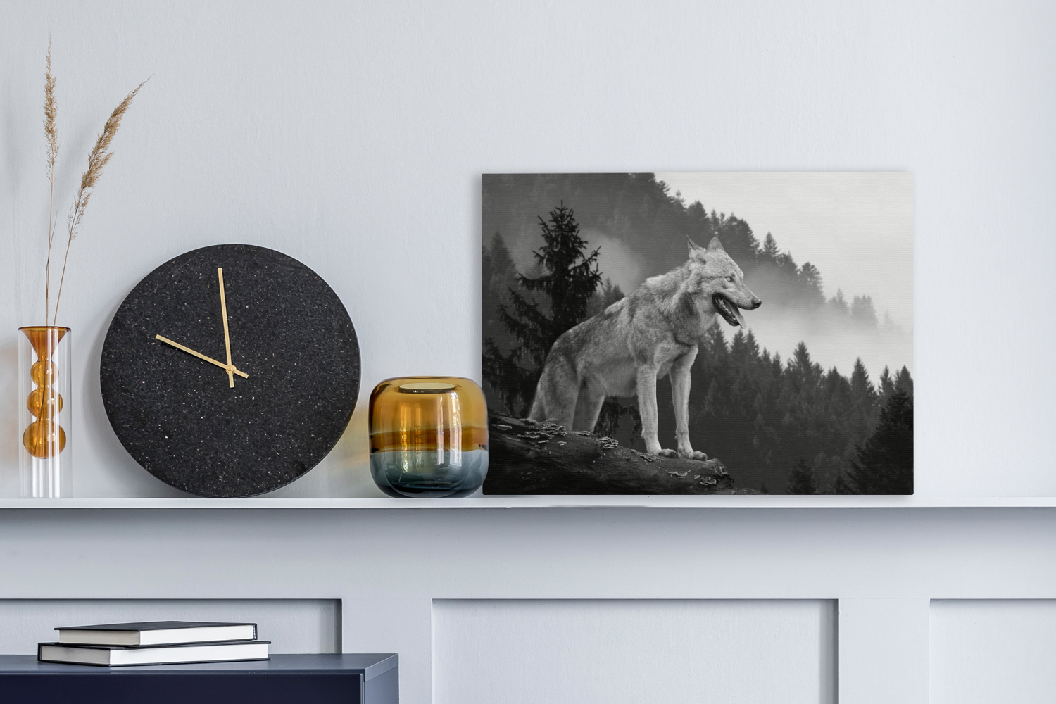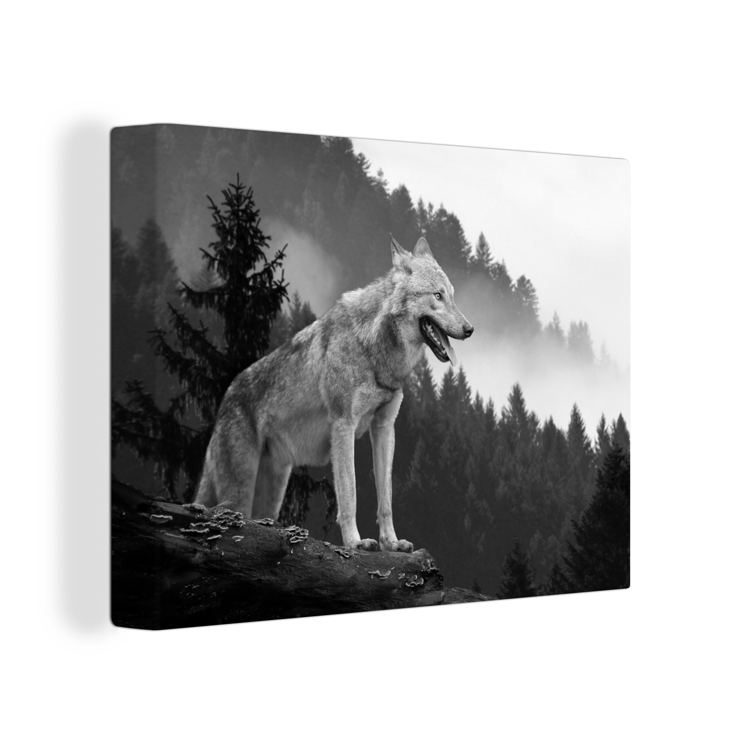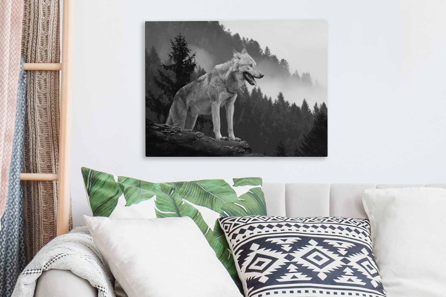 Tableau sur toile Loup - Forêt - Noir - Blanc Decoration murale 40x30 cm