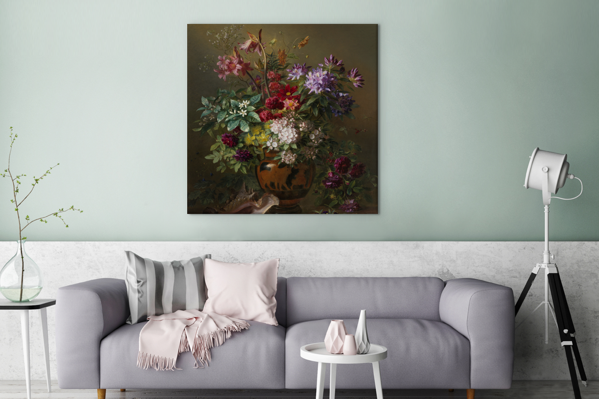 | Libellé | Tableau sur toile Nature morte avec des fleurs dans un vase grec : Allégorie du printemps - Peinture de G.J.J Van Os Decoration murale 90x90 cm |