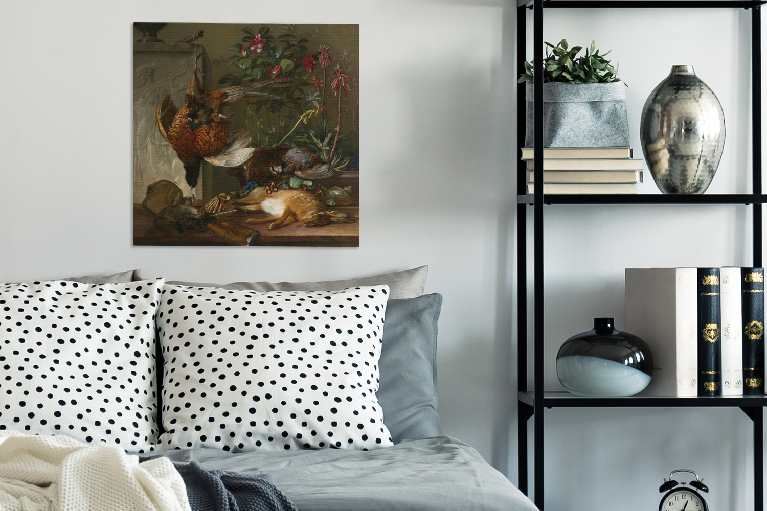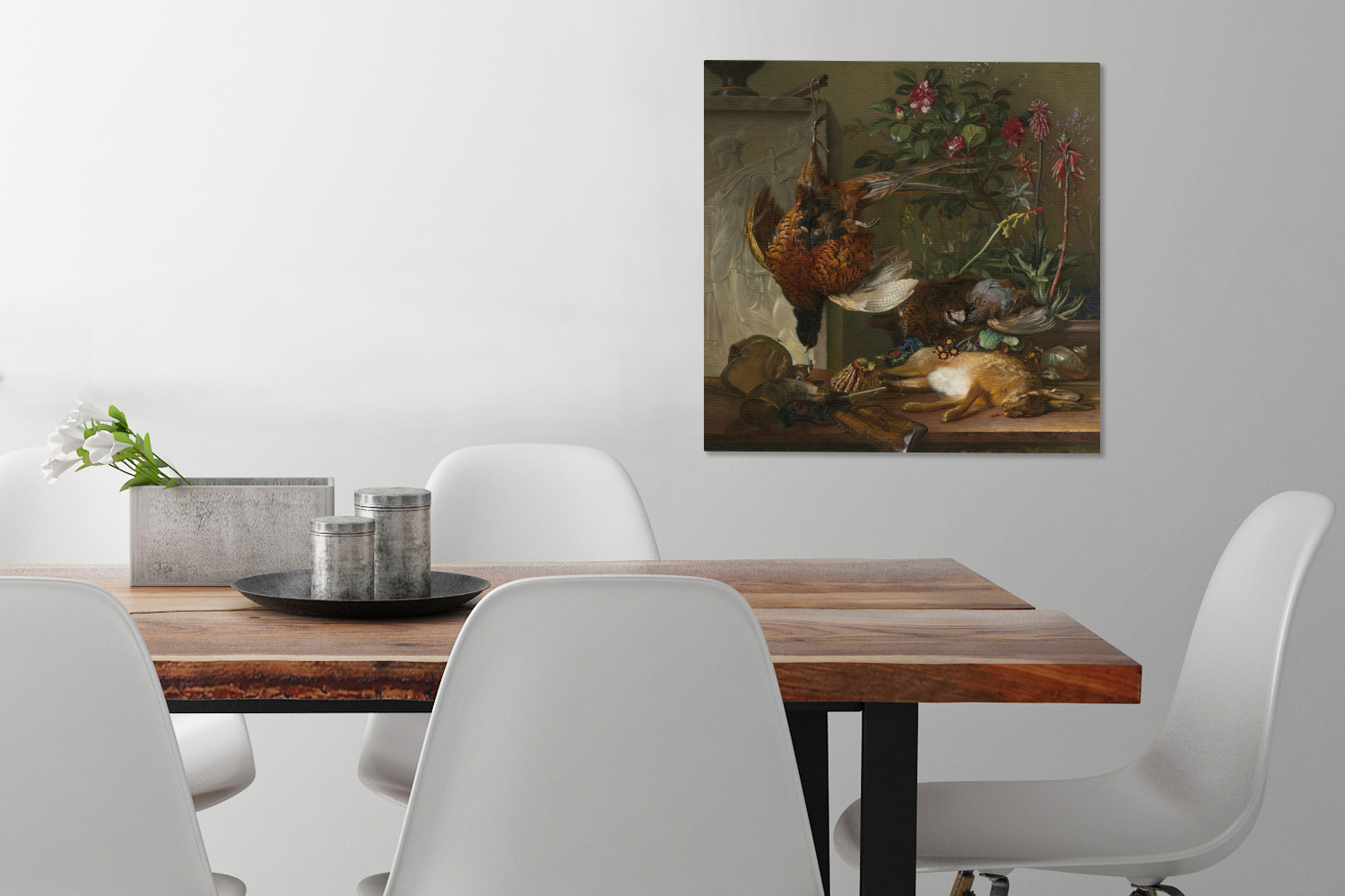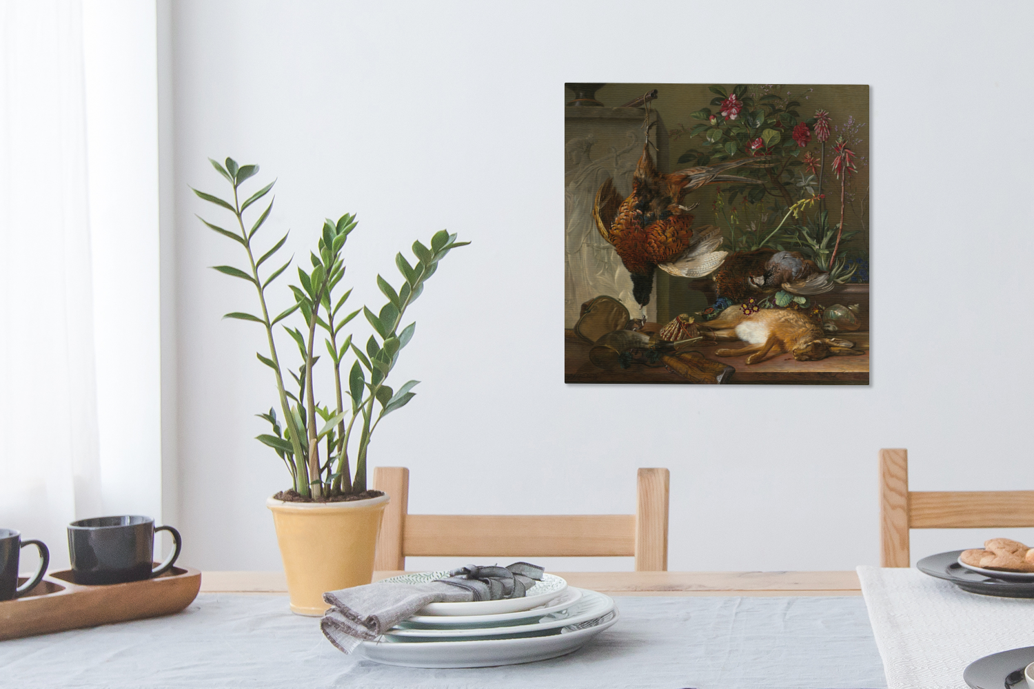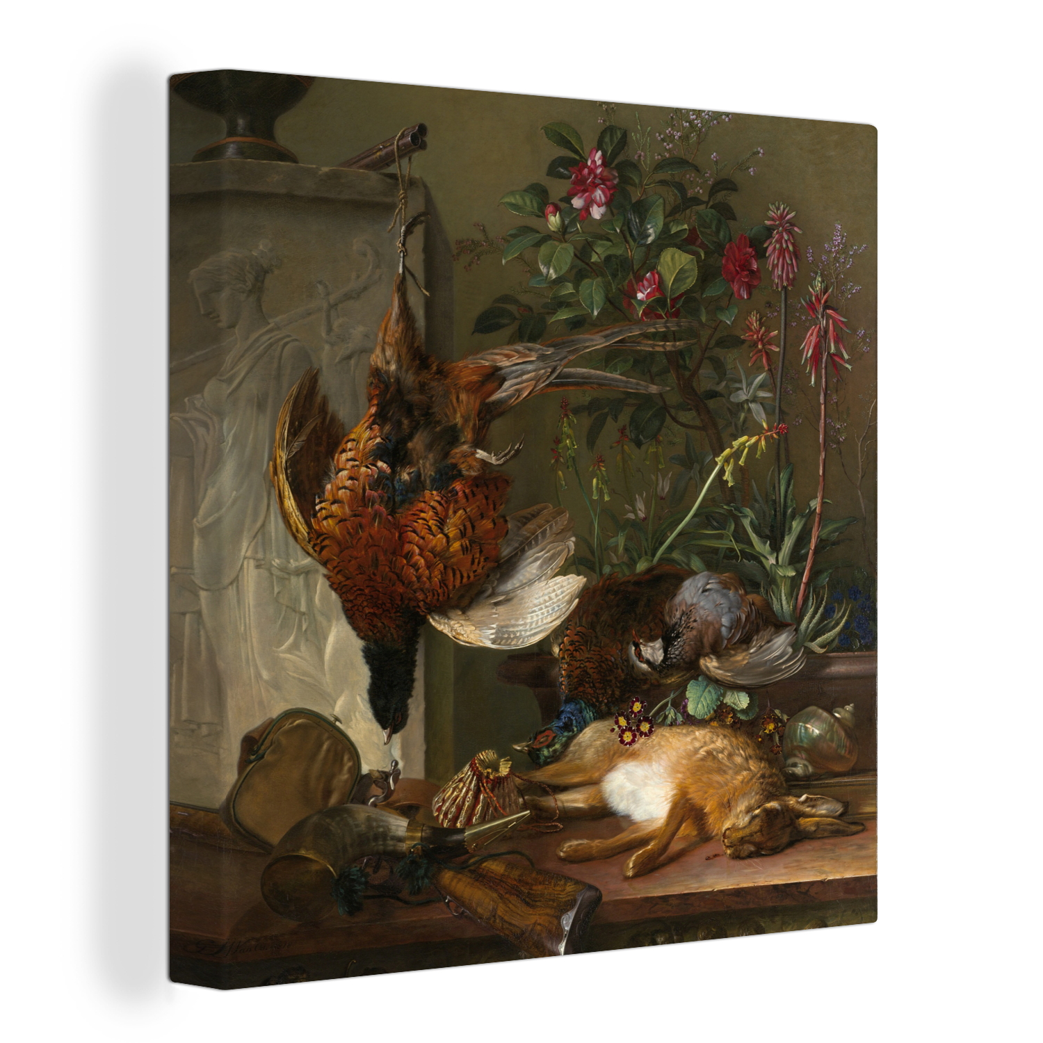 | Libellé | Tableau sur toile Nature morte avec matériel de chasse et stèle grecque : allégorie de l'automne - Peinture de G.J.J Van Os Decoration murale 50x50 cm |