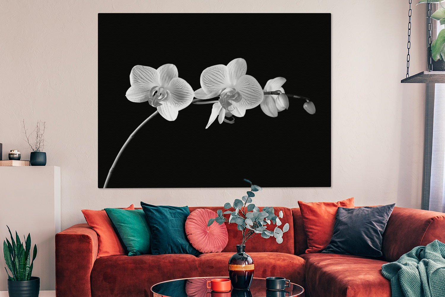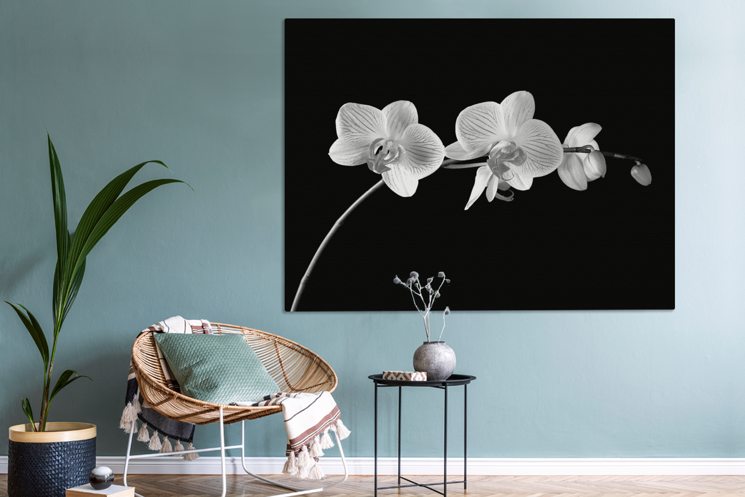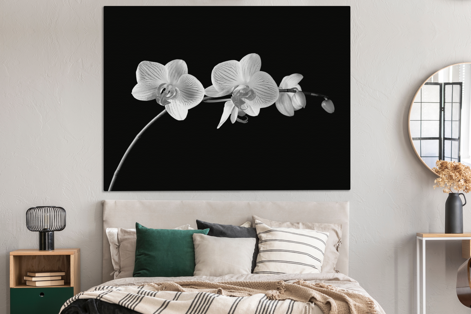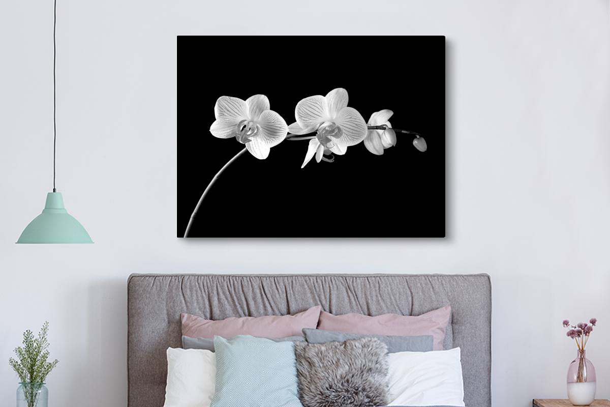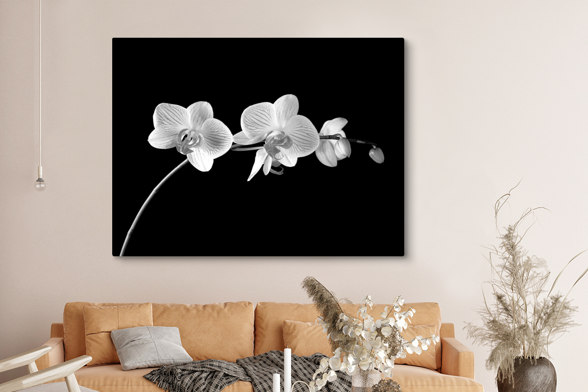 | Libellé | Tableau sur toile Orchidée sur fond noir - noir et blanc Decoration murale 160x120 cm |