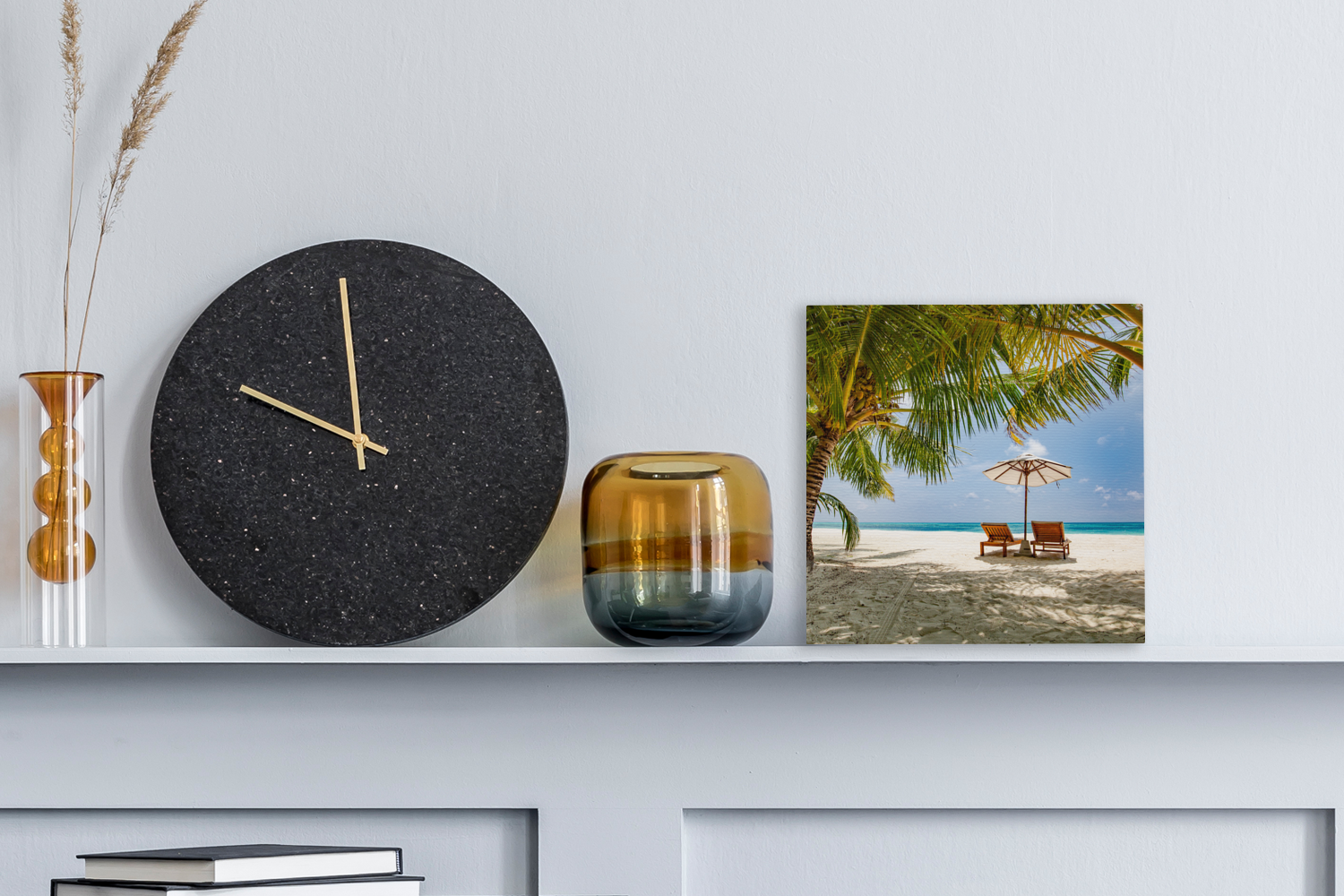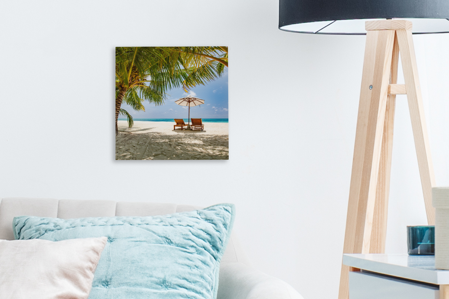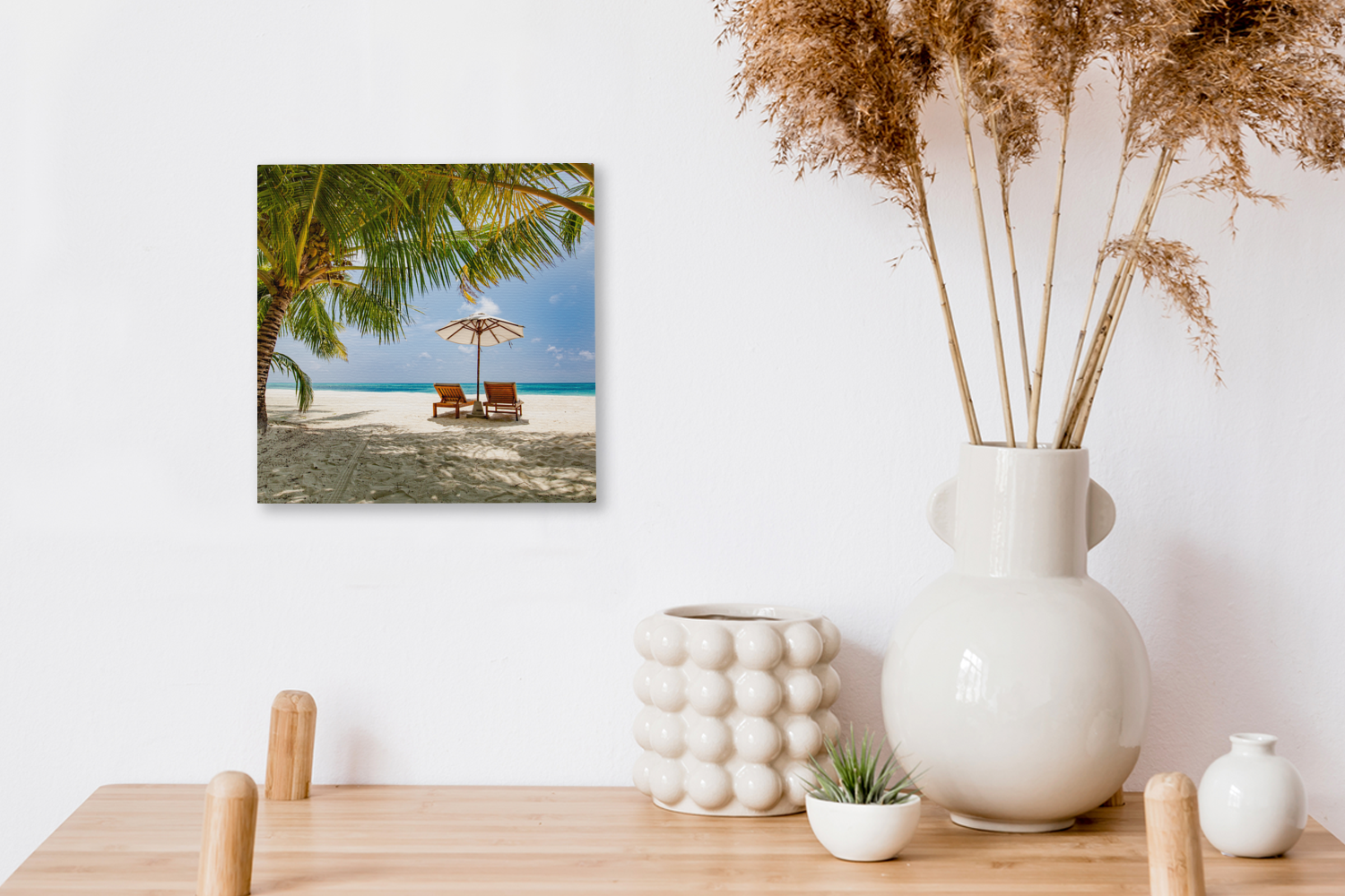 Tableau sur toile Plage - Chaise de plage - Parasol Decoration murale 20x20 cm