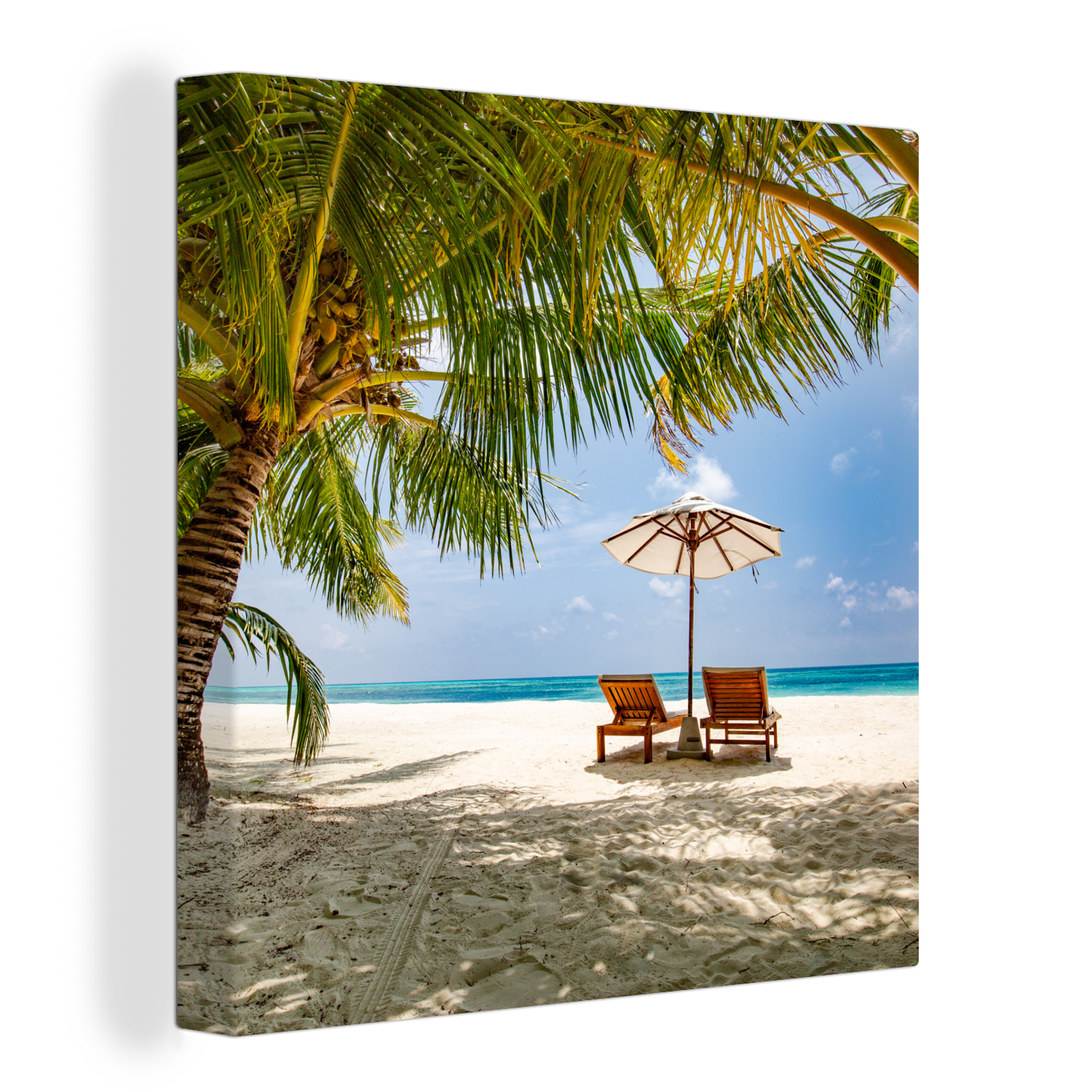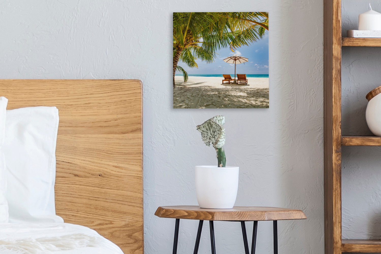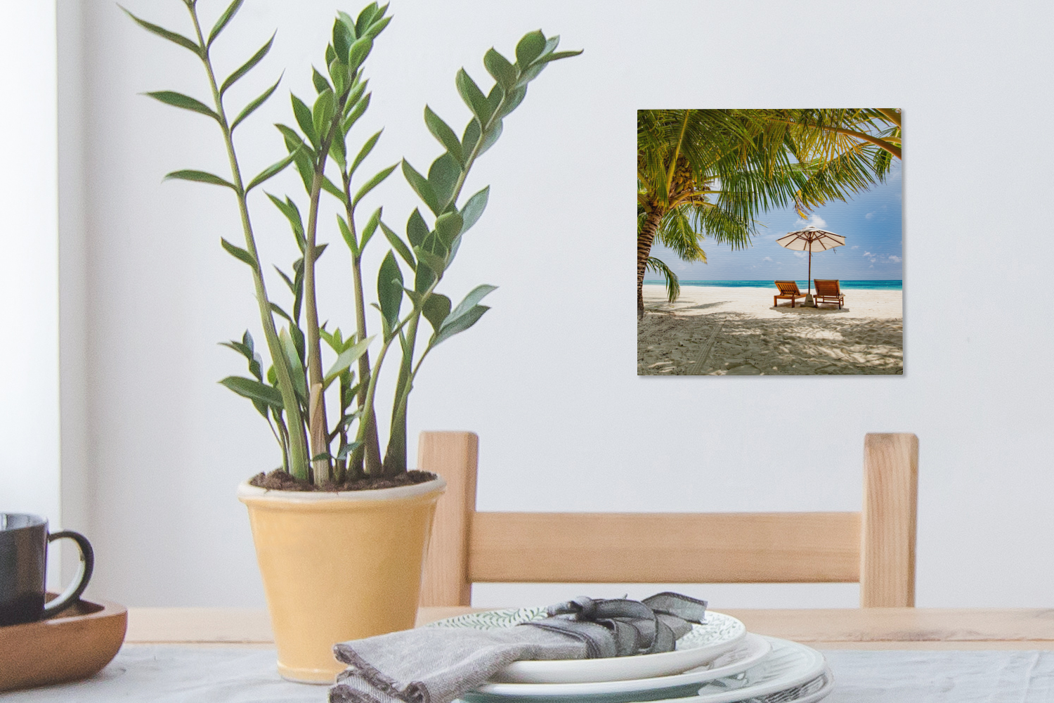 Tableau sur toile Plage - Chaise de plage - Parasol Decoration murale 20x20 cm