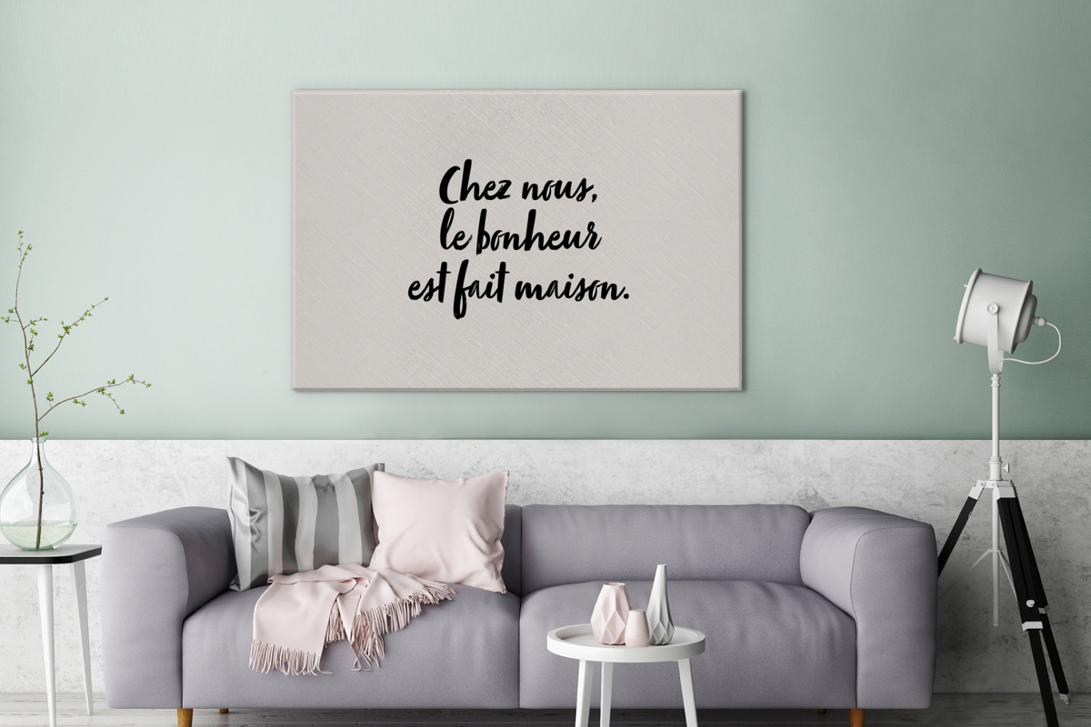 Tableau sur toile Proverbes - Chez nous, le bonheur est fait maison - Citations - Bonheur Decoration mura