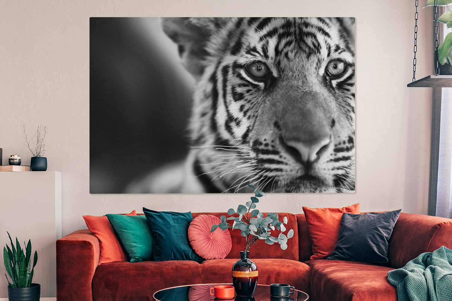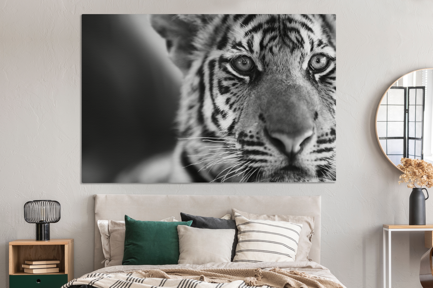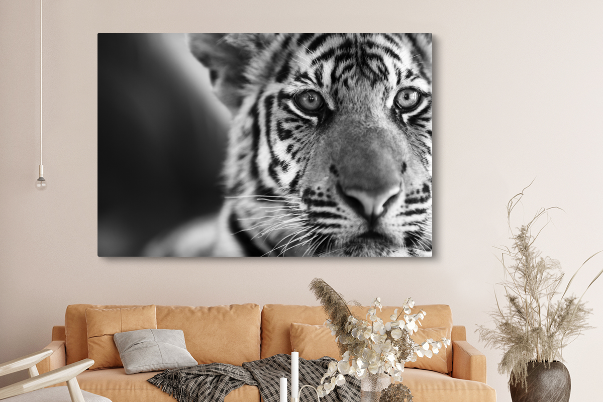 Tableau sur toile Tigre - louveteau - noir - blanc Decoration murale 150x100 cm