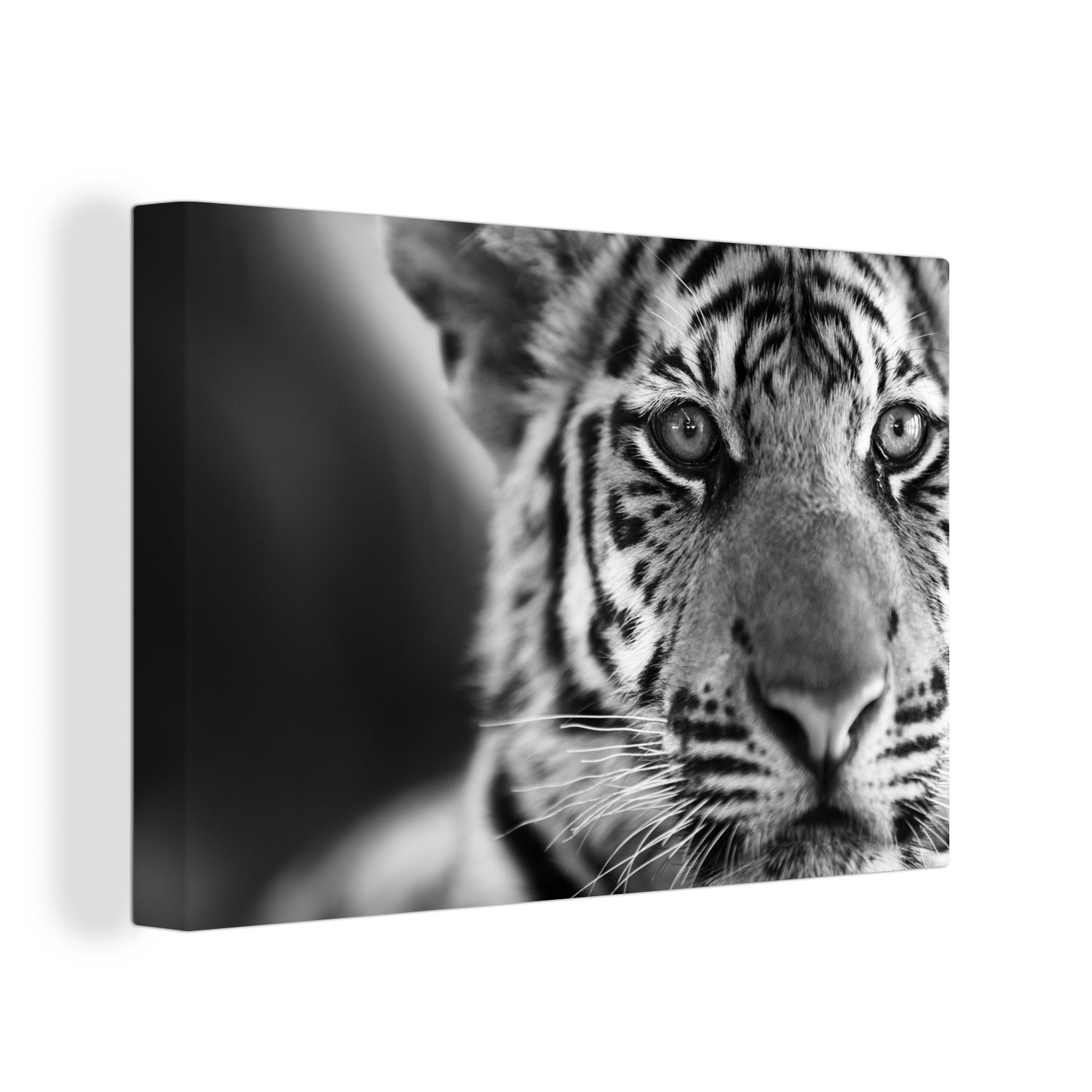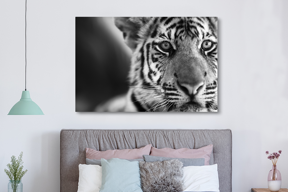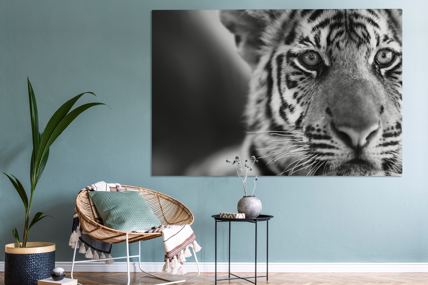 Tableau sur toile Tigre - louveteau - noir - blanc Decoration murale 150x100 cm
