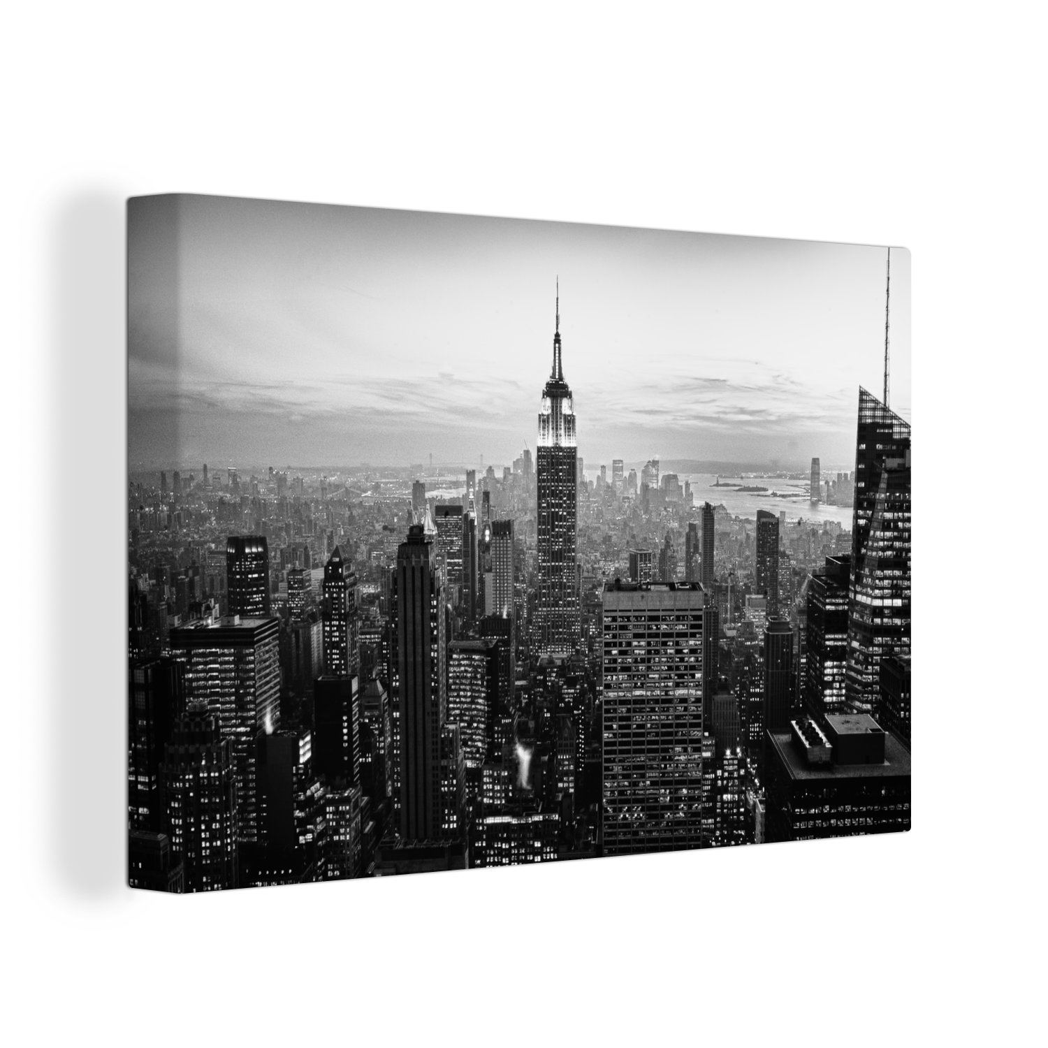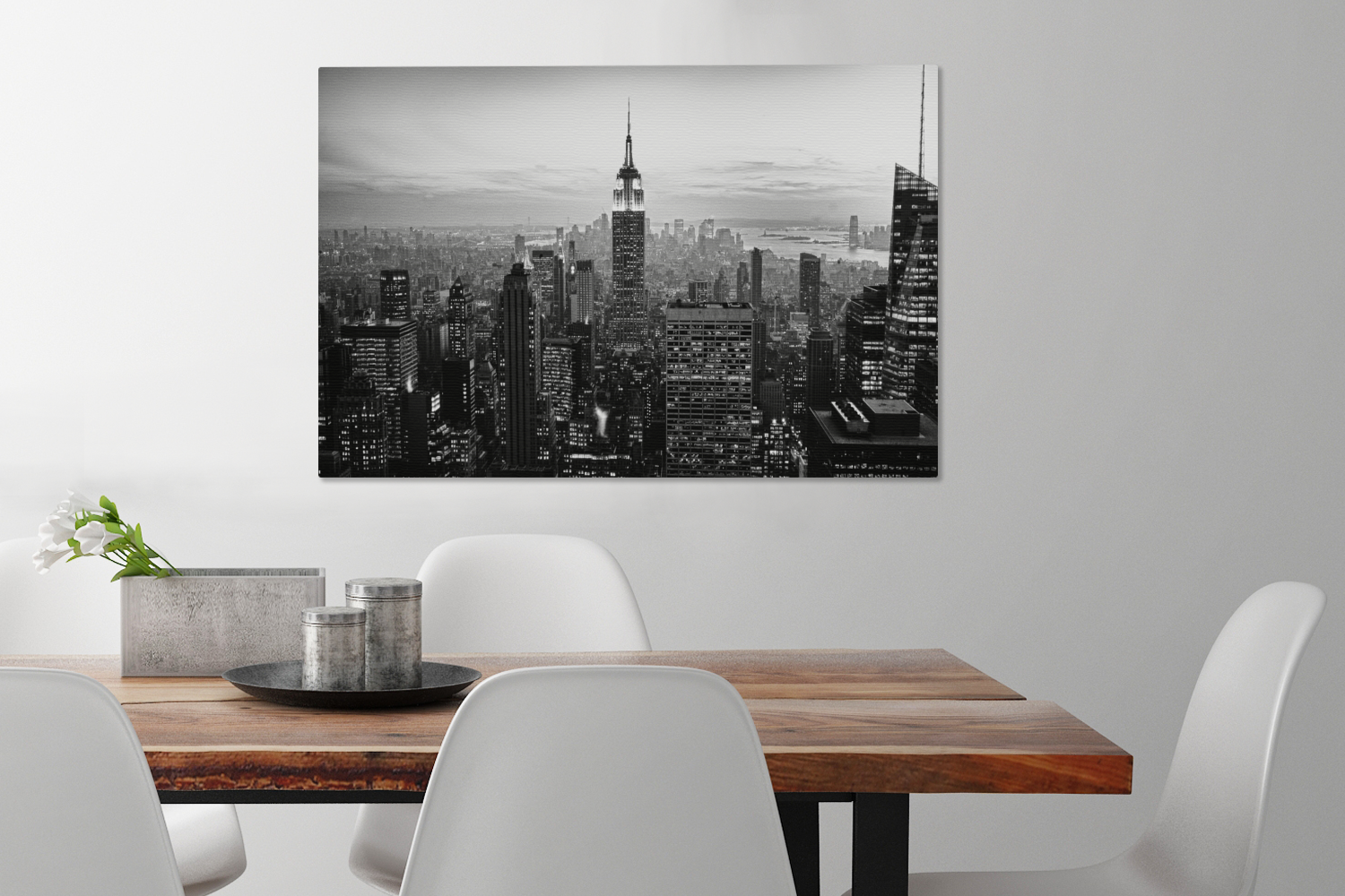 Tableau sur toile Tirage photo noir et blanc de la ville de New York Decoration murale 90x60 cm