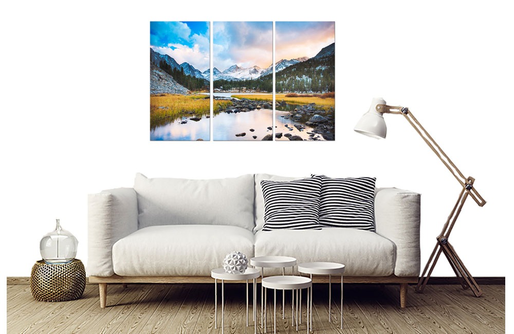 | Libellé | Tableau triptyque paysage lac et montagne sous la neige - 90x60 cm |
