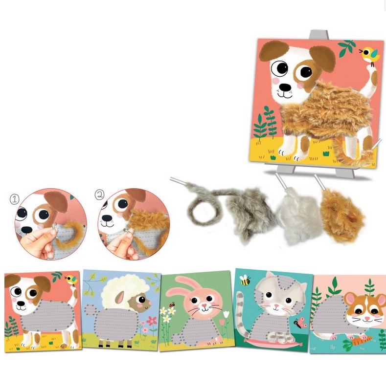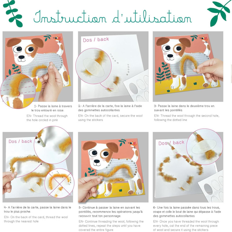 Grâce aux cartes à lacer et à la jolie laine les enfants créeront des douces fourrures d'animaux.