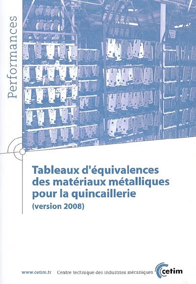 Cet ouvrage réalisé sous l'égide de la commission «Quincaillerie» du Cetim constitue une mise à jour du rapport Performances «Tableaux d'équivalence des matériaux pour la quincaillerie» (réf. 9P04, Cetim, 2004).