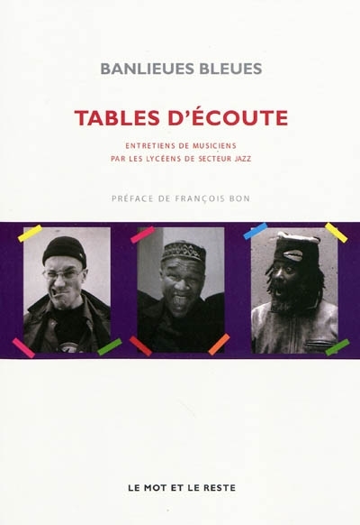 « Vous avez vraiment de très bonnes questions, bien meilleures que celles de la plupart des journalistes », réplique le guitariste Marc Ribot aux (im)pertinentes questions de ses jeunes interviewers. Ces tables d'écoute rassemblent les meilleurs entretiens parus dans le journal Secteur Jazz : de 2001 à 2009, des lycéens de Drancy, Tremblay-en-France, La Courneuve, Noisy-le-Grand ou Pantin, ont vécu leur année scolaire aux rythmes des musiciens invités dans le cadre du festival Banlieues Bleues, jazz en Seine-Saint-Denis. Chaque mois de mars, dans les coulisses des salles de concert, quelques adolescents lancés à la recherche de sons et de sens conversaient passionnément avec des musiciens s'ouvrant à eux de la manière la plus affranchie possible. Ce rituel s'est répété pendant près d'une décennie, préparé en classe pendant de longs mois, avec des professeurs, un ethnologue, Alexandre Pierrepont, et un photographe, Éric Garault Le pari était de saisir l'occasion offerte par la présence et la disponibilité de ces musiciens, pour ces jeunes, et d'aller avec eux au coeur des choses. Vers la vision au coeur de ces musiques, transmise de génération en génération - d'Andrew Hill, Bernard Lubat ou Danyel Waro à Jason Moran, Médéric Collignon ou Otomo Yoshihide - jusqu'à ces adolescents : tour à tour fabuleuse, politique ou magique, toujours en quête d'affirmation individuelle et de création collective, de diversité et d'harmonie, d'un monde d'une lumineuse hospitalité.