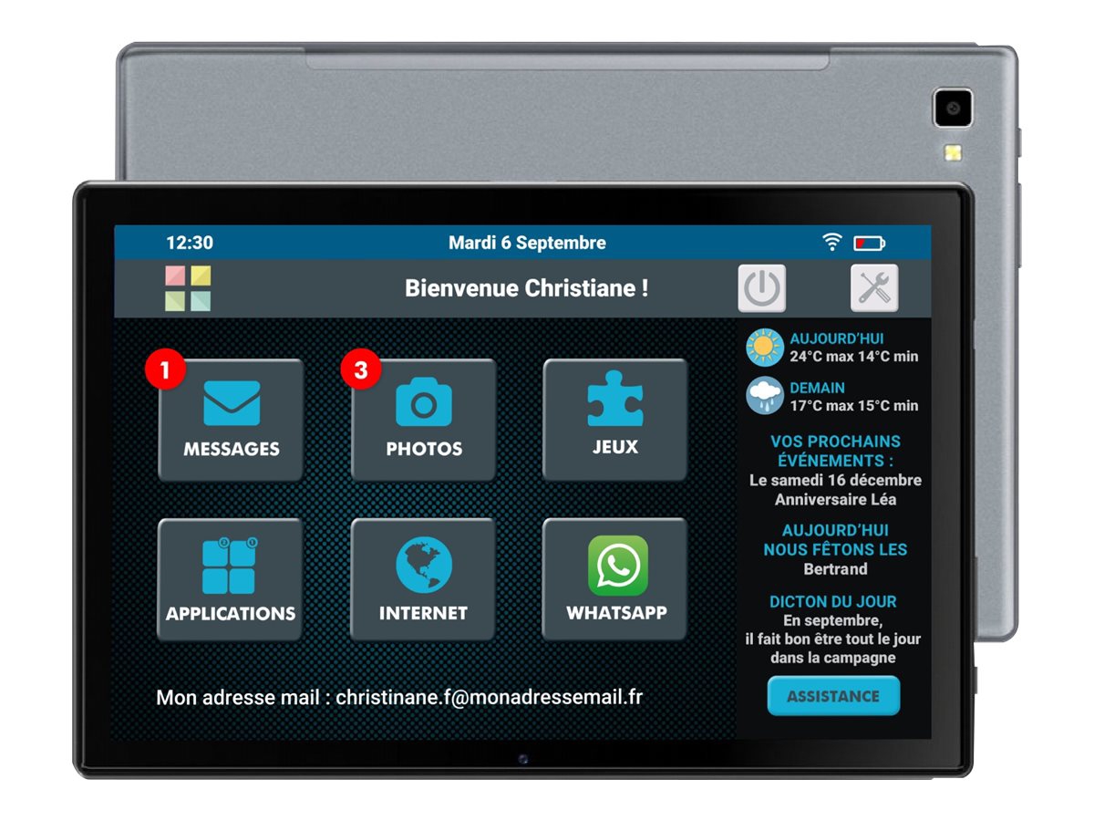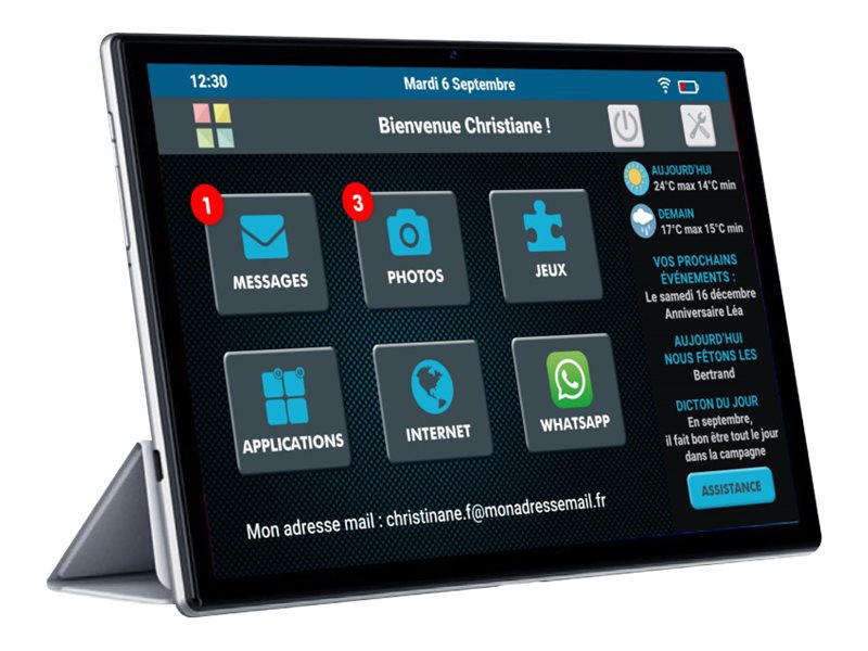 Facilotab est une tablette simplifiée permettant une prise en main rapide. C'est un matériel simple et moderne dotée d'une messagerie simplifiée pour envoyer et recevoir e-mail et photos! Communiquez avec ses proches devient un jeu d'enfant même pour les néophytes en informatique.