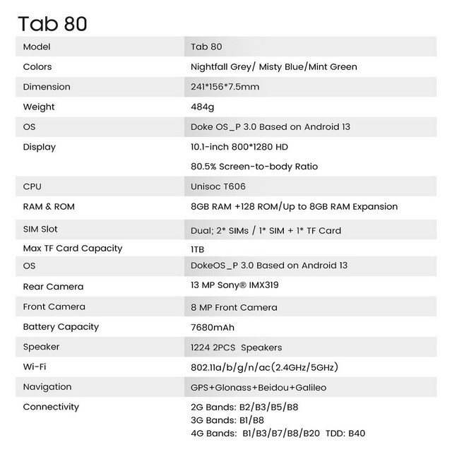Contenu de l'emballage 1 x Blackview Tab 80 Tablet