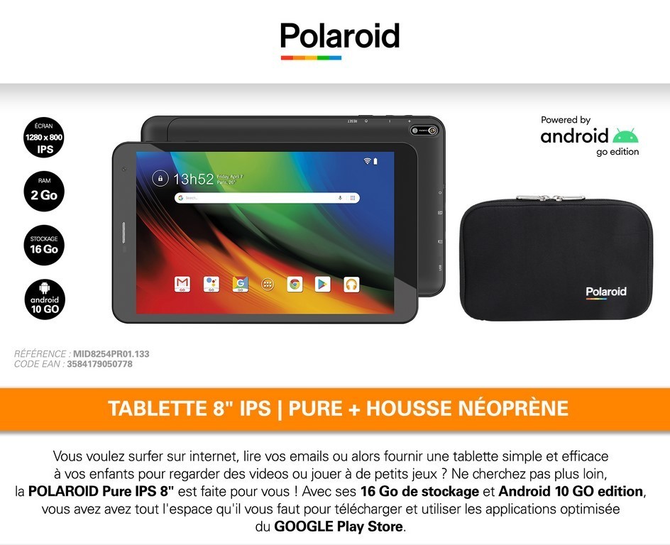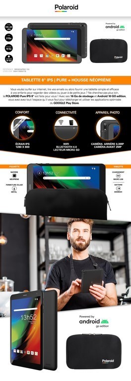 | Libellé | Tablette pure 8'' IPS POLAROID |