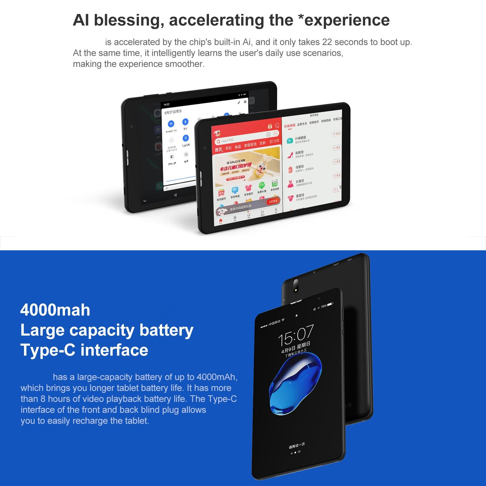 Avec une connectivité complète (2.4G/5G WiFi, Bluetooth 5.0), elle offre une utilisation polyvalente. Sa batterie lithium de 4000mAh assure une autonomie impressionnante, pour un usage prolongé.