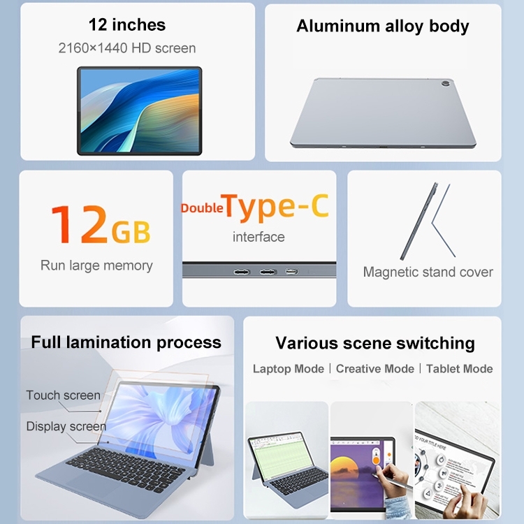 Tablette Windows 11 Grand Écran 12 Pouces 12GB+256GB + SD 256Go YONIS
