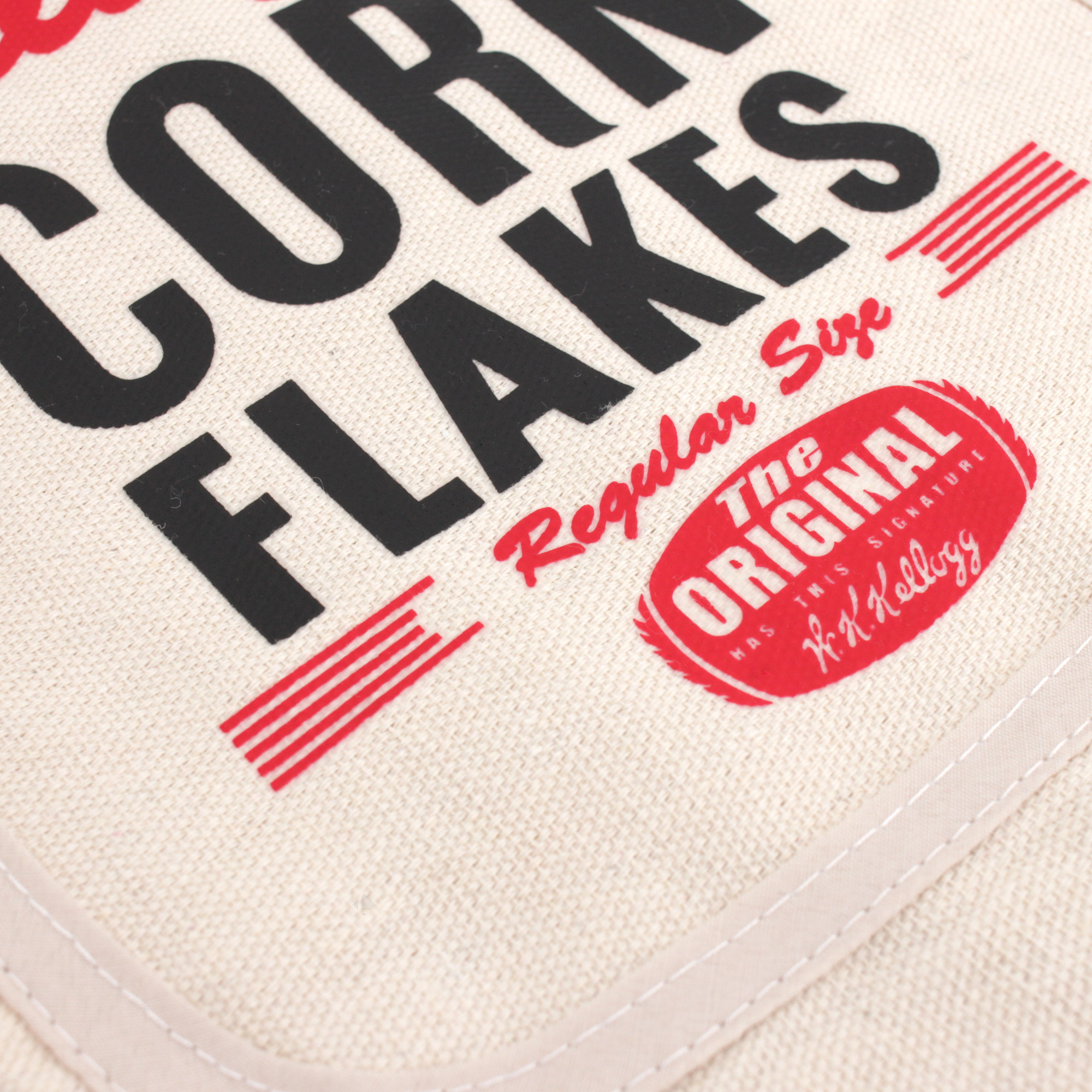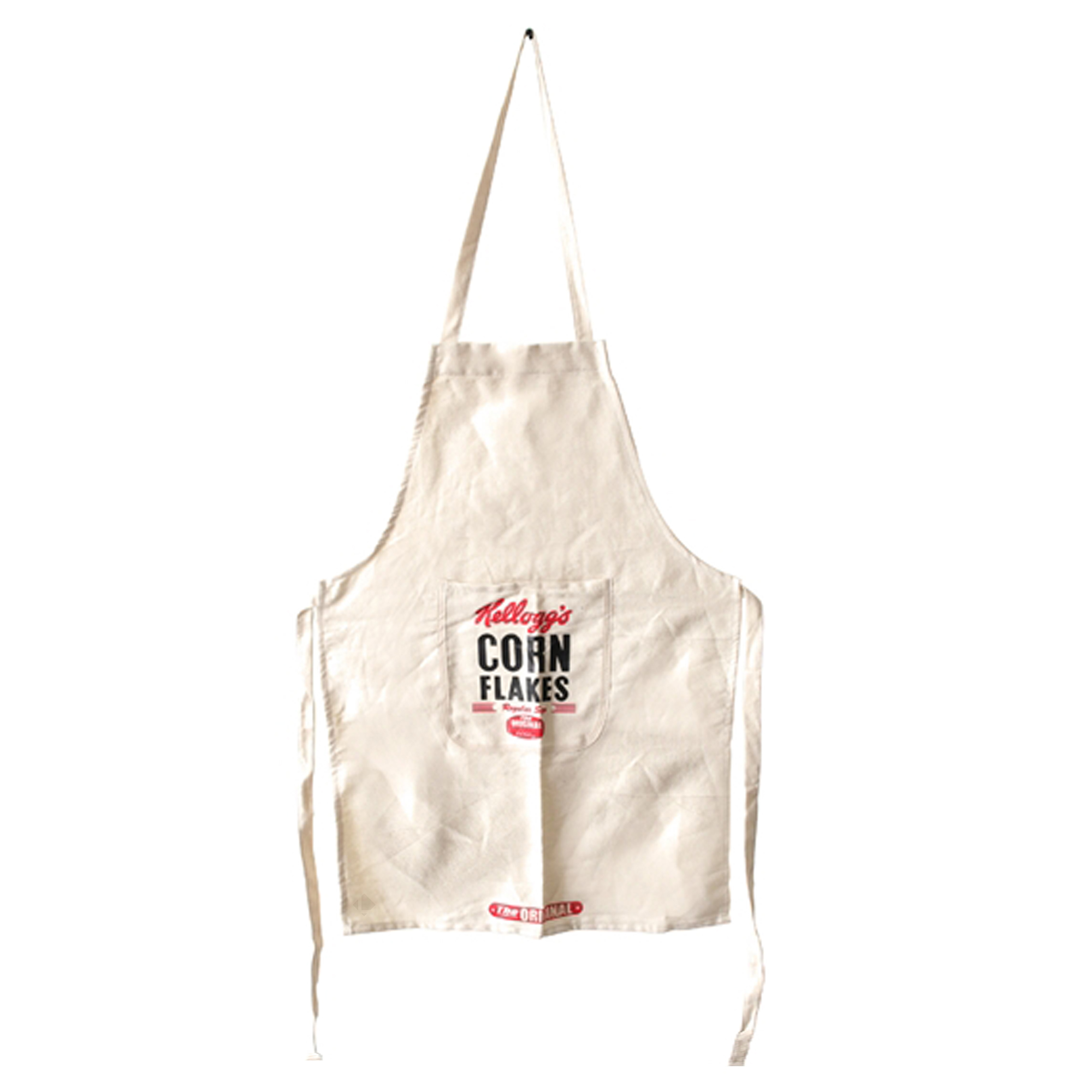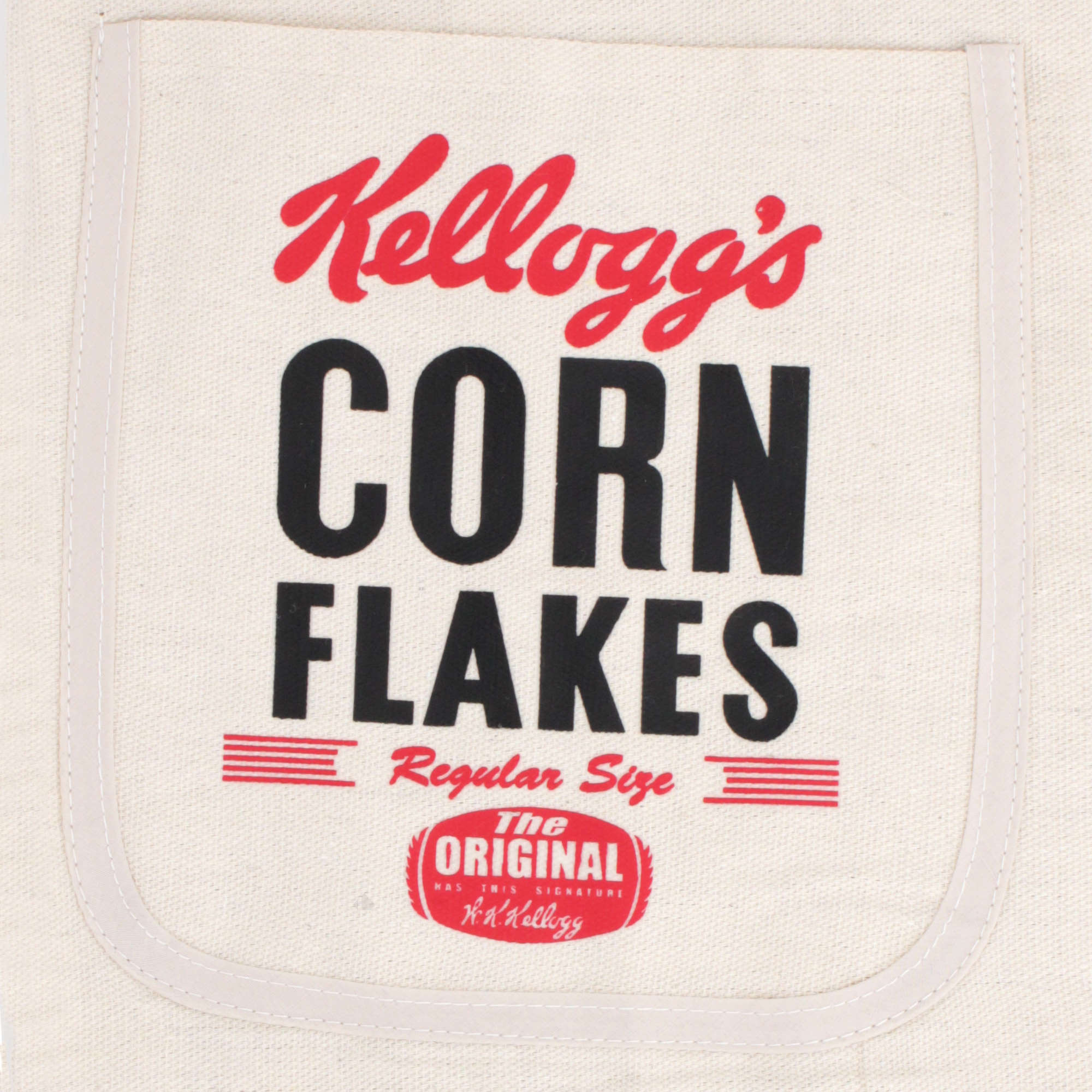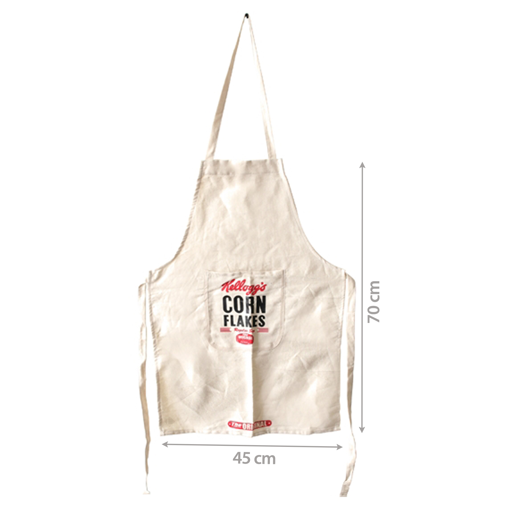 | Plus produit | Tablier de cuisine en toile de coton avec impression Kellogg's CORN FLAKES The original sur la poche centrale, fond coloris beige. |