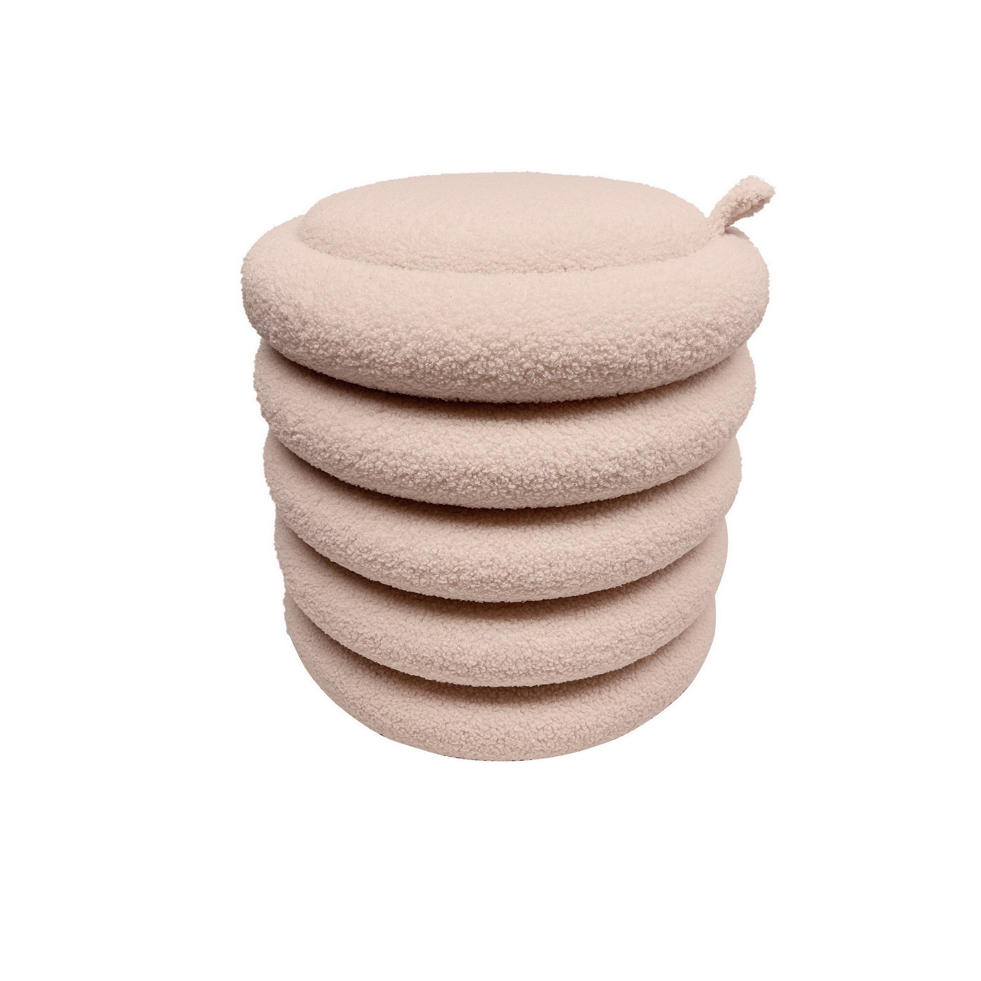 TABOURET AVEC RANGEMENT BOUCLETTES BEIGE ROSE
