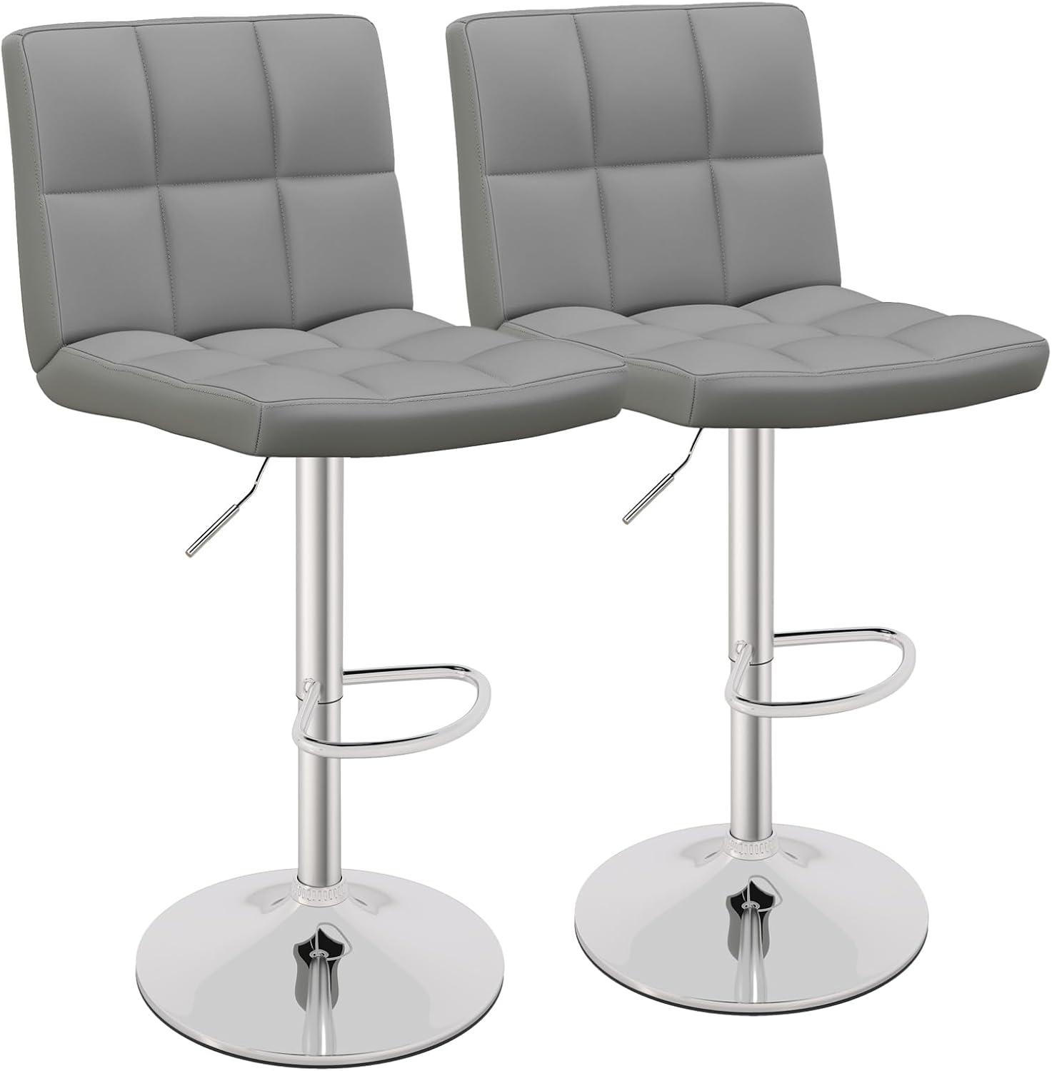 Tabouret bar, chaise de bar pivotante en PU, hauteur 65-85 cm, siège rembourré, gris-lot de 2
