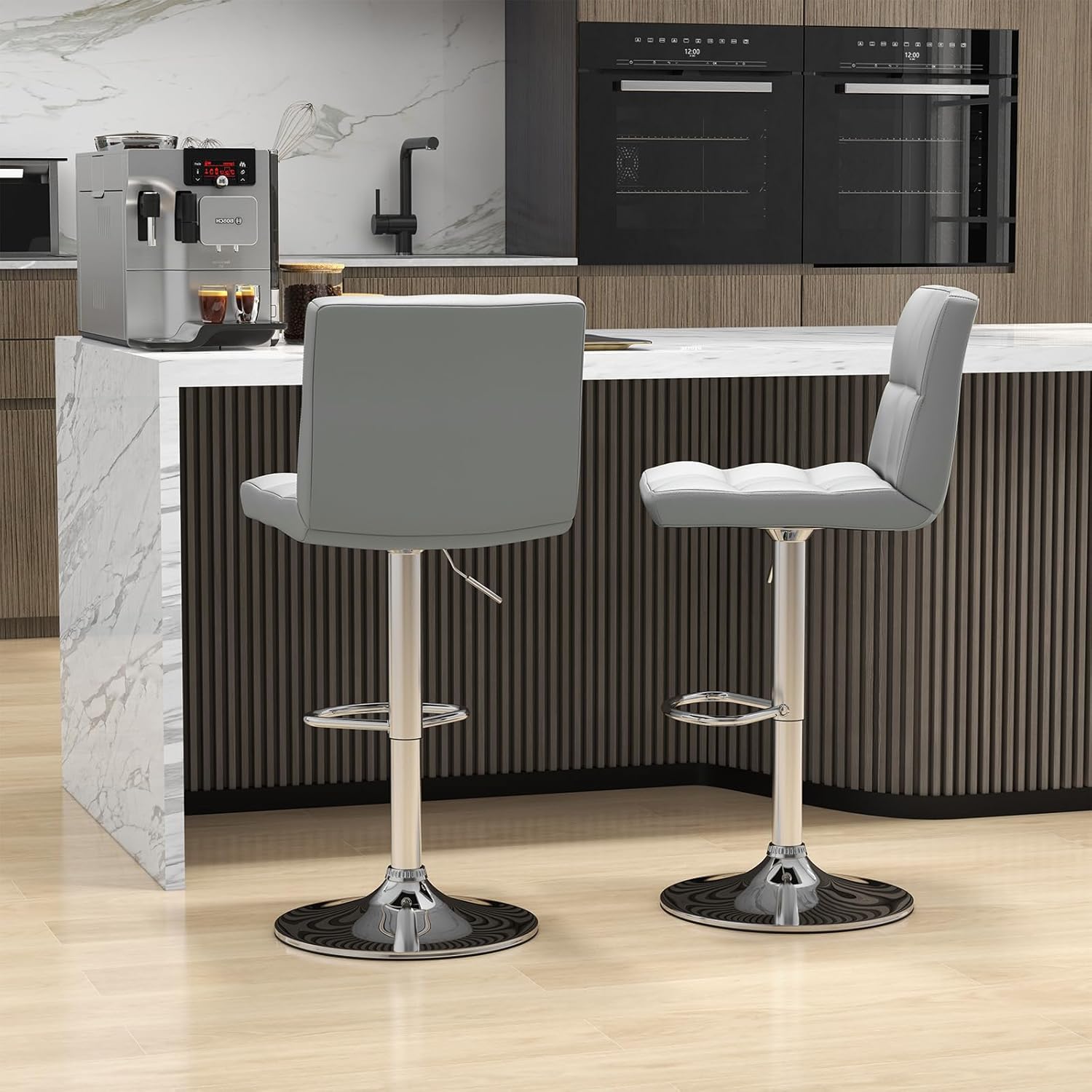 - DESIGN ÉPURÉ Avec un aspect minimaliste et moderne, notre chaise haute en PU s’adapte parfaitement aux différentes pièces, telles que l’îlot central, la cuisine, le café, le bar, le bstrot, etc.