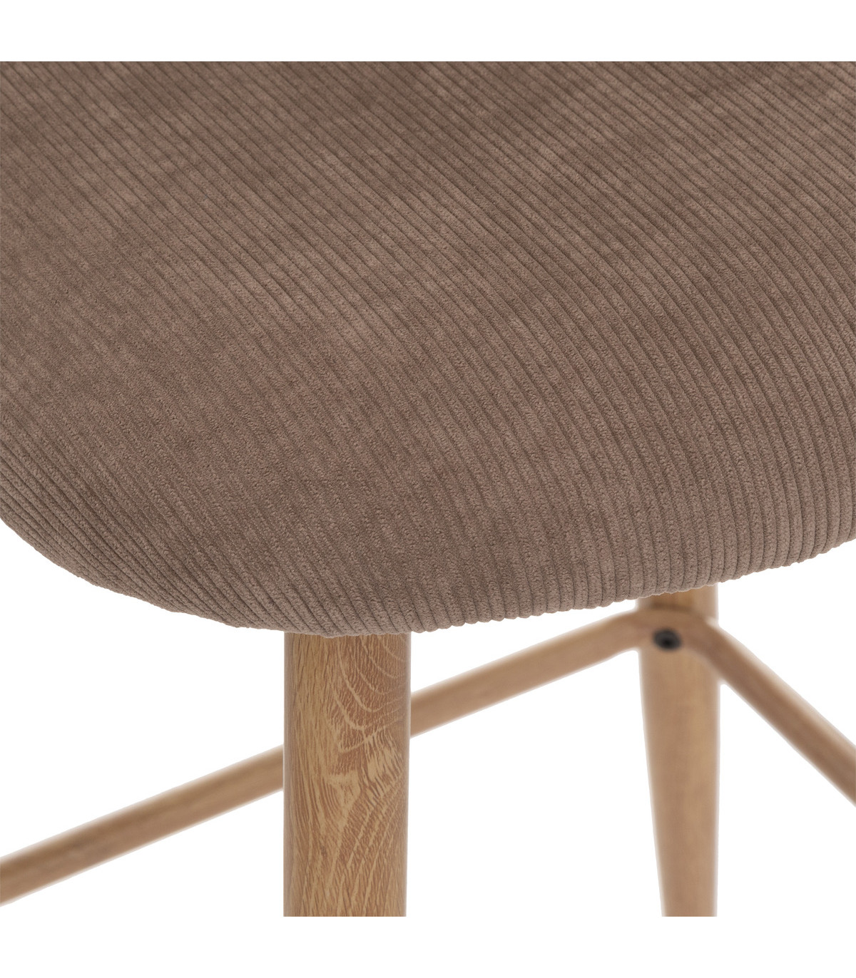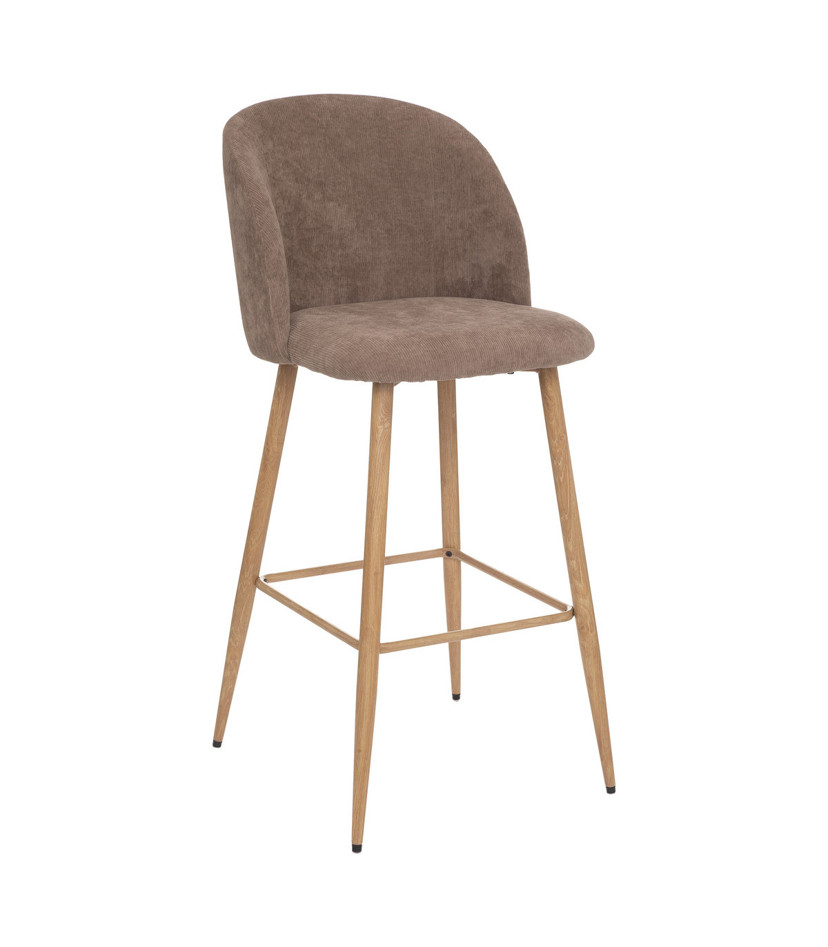 Tabouret Chaise de Bar en velours côtelé Taupe et pieds en métal aspect chêne