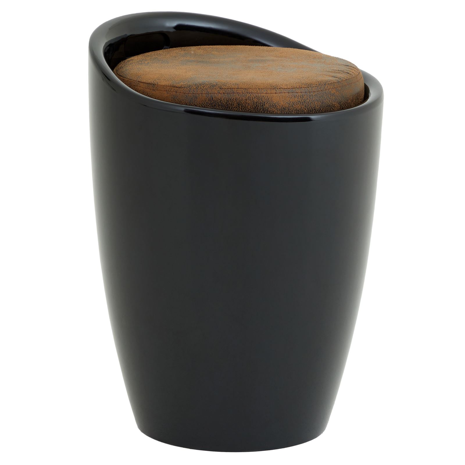 | Libellé | Tabouret DANIEL pouf rond avec rangement et assise rembourrée, structure en plastique noir et revêtement en tissu brun vintage |