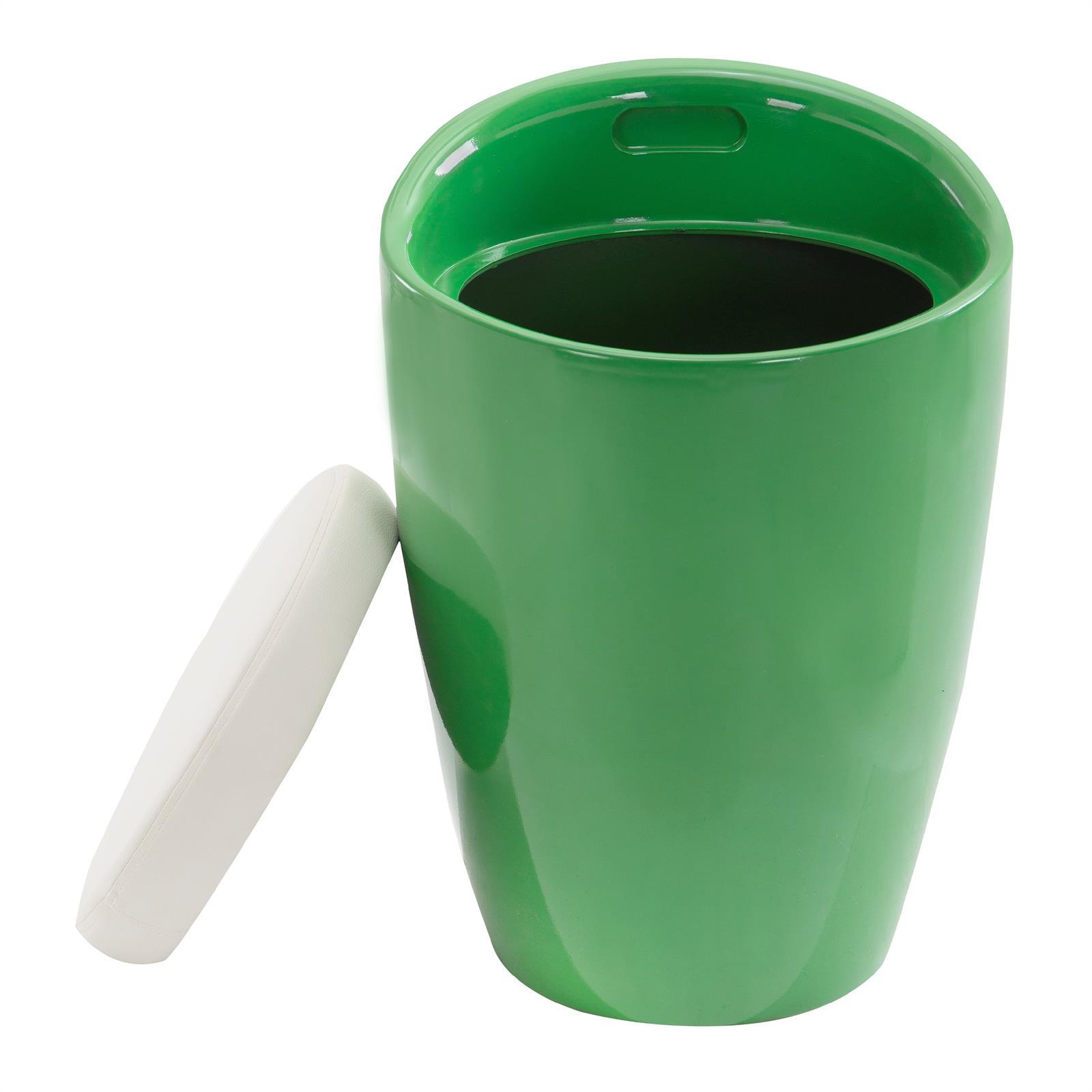 | Libellé | Tabouret DANIEL pouf rond coffre de rangement panier à linge siège avec assise rembourrée blanc, structure en plastique vert |