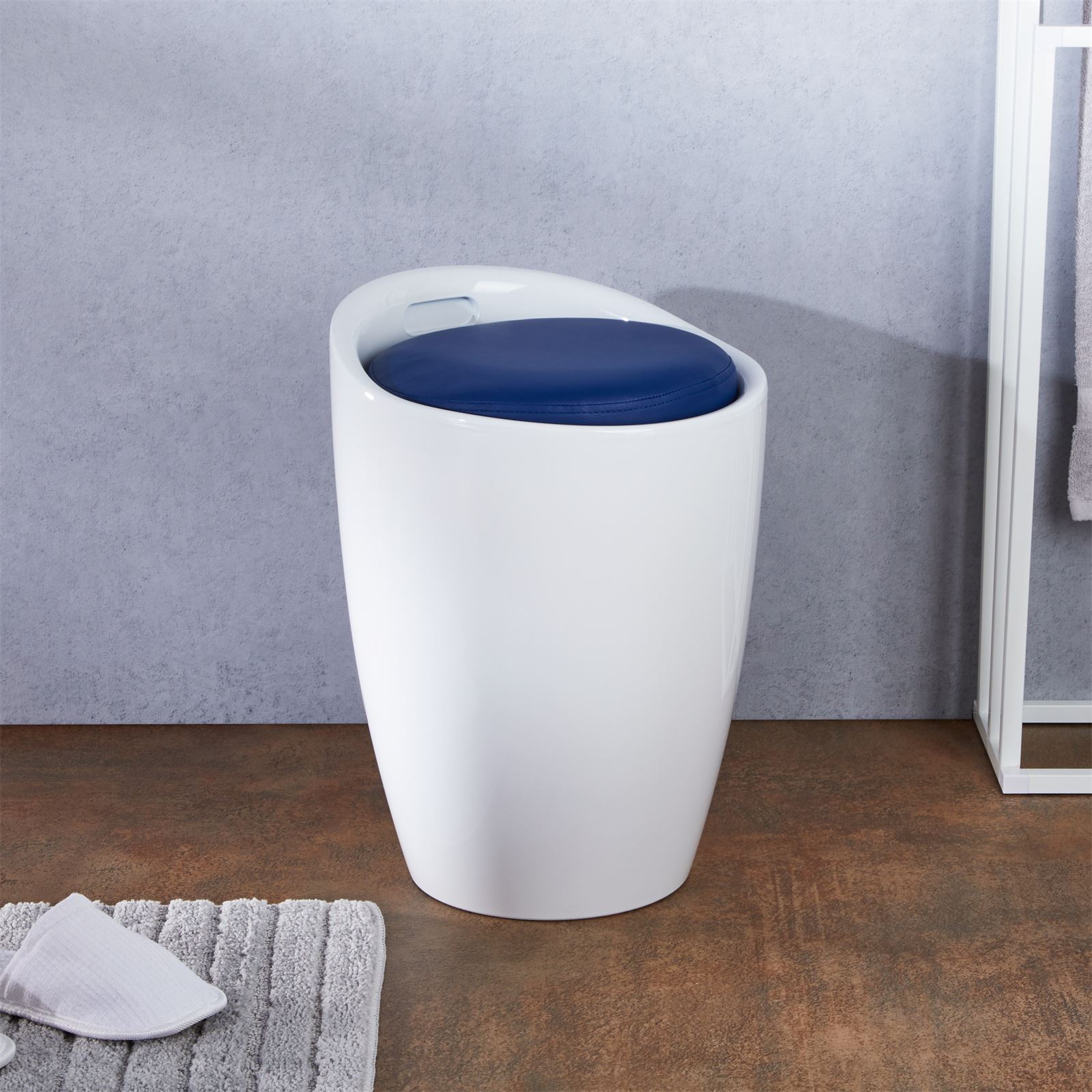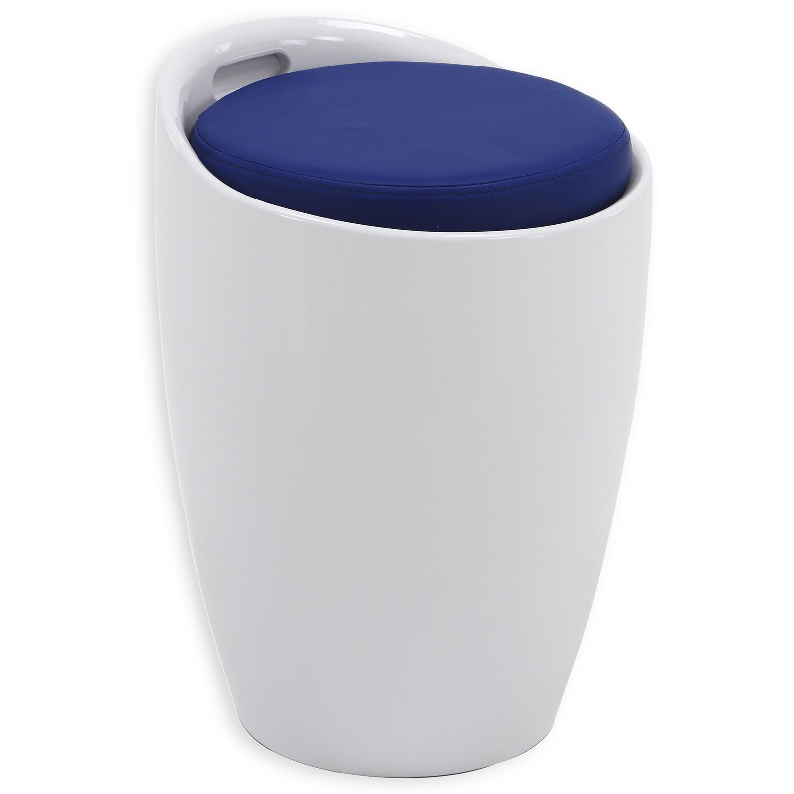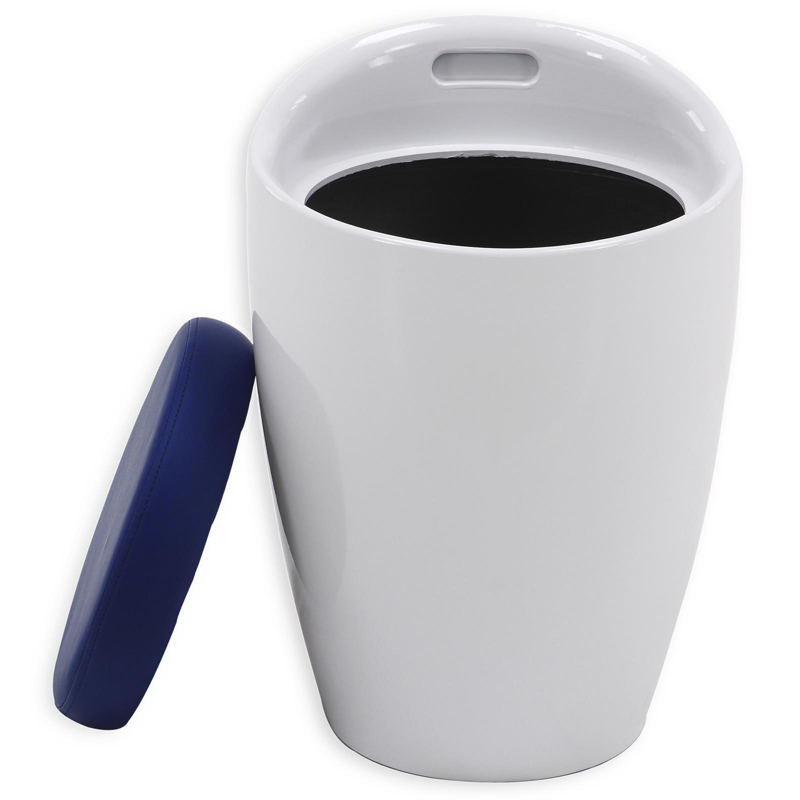 | Libellé | Tabouret DANIEL pouf rond coffre de rangement panier à linge siège avec assise rembourrée bleu, structure en plastique blanc |