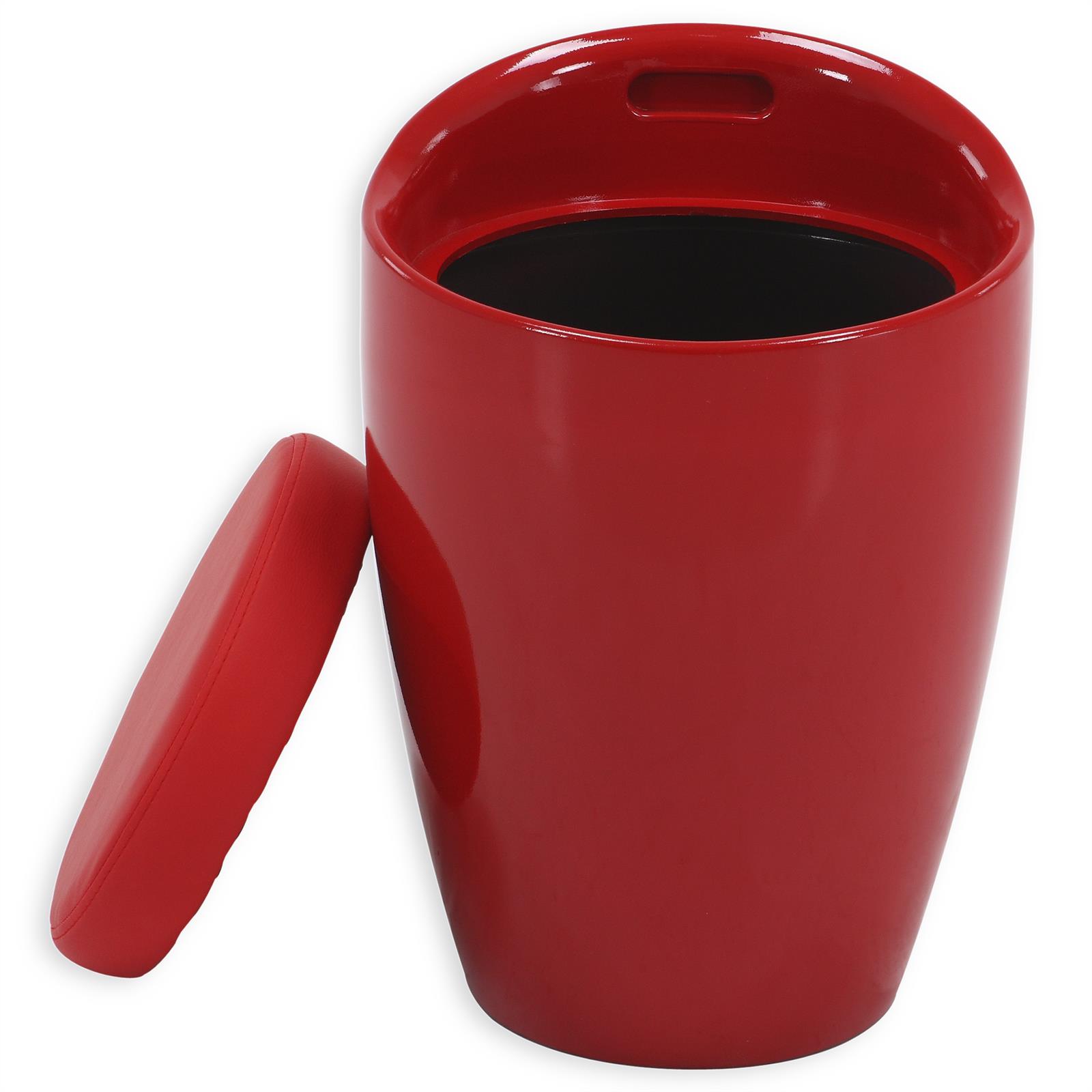 Tabouret DANIEL pouf rond coffre de rangement panier à linge siège avec assise rembourrée rouge, structur