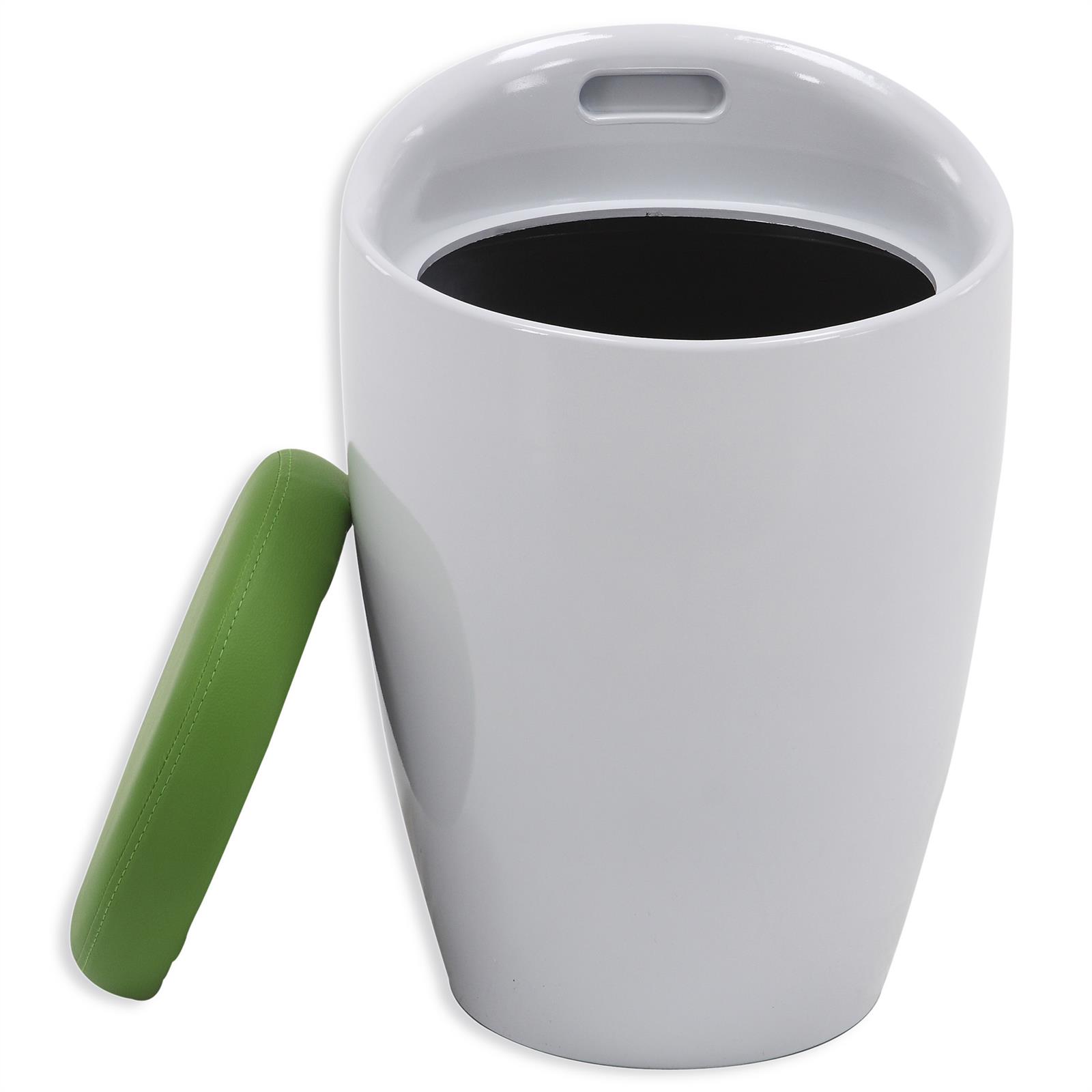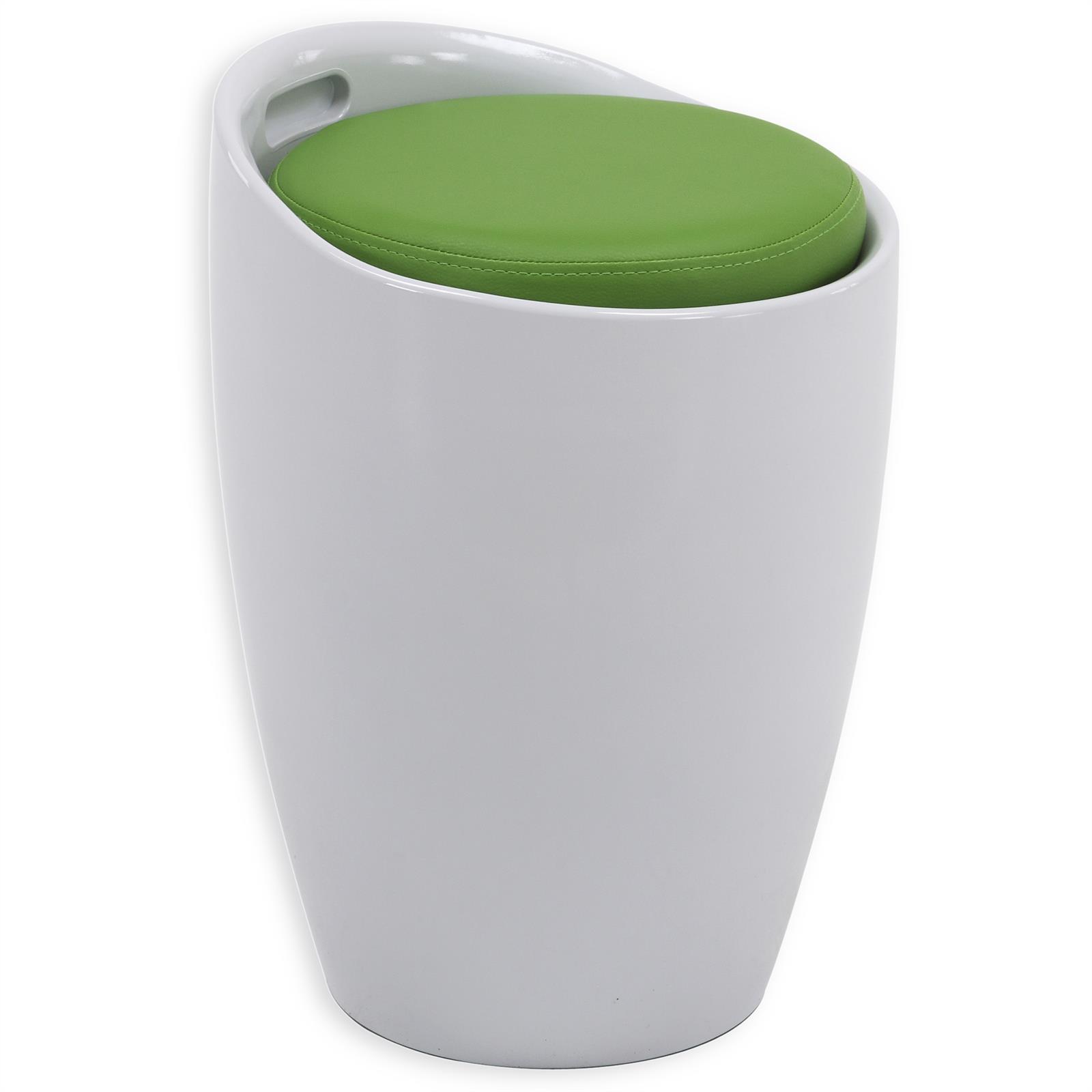 | Libellé | Tabouret DANIEL pouf rond coffre de rangement panier à linge siège avec assise rembourrée vert, structure en plastique blanc |