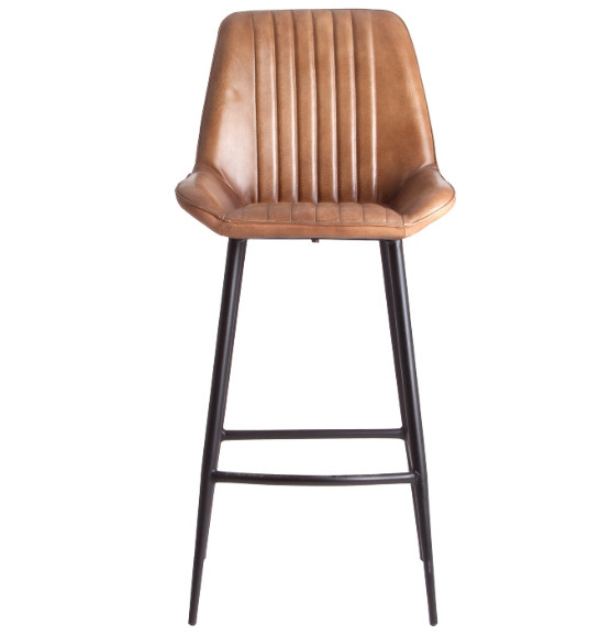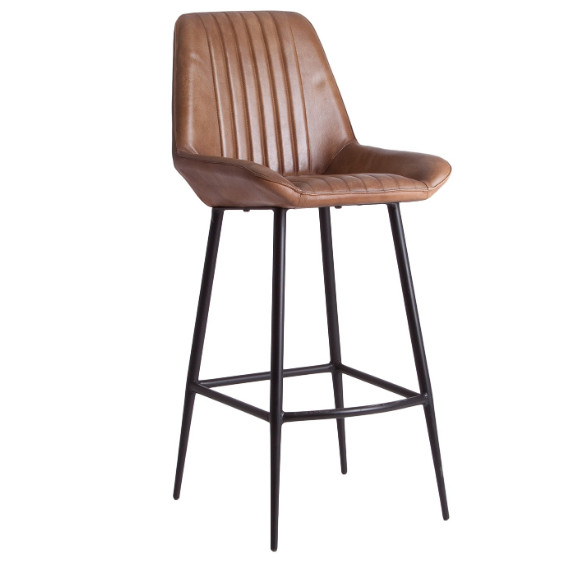 Tabouret de bar cuir marron clair et métal noir Larrah