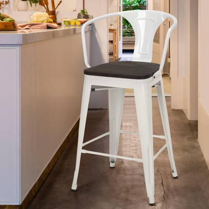 | Libellé | Tabouret de bar en bois et métal avec dossier design industriel Tsuki |