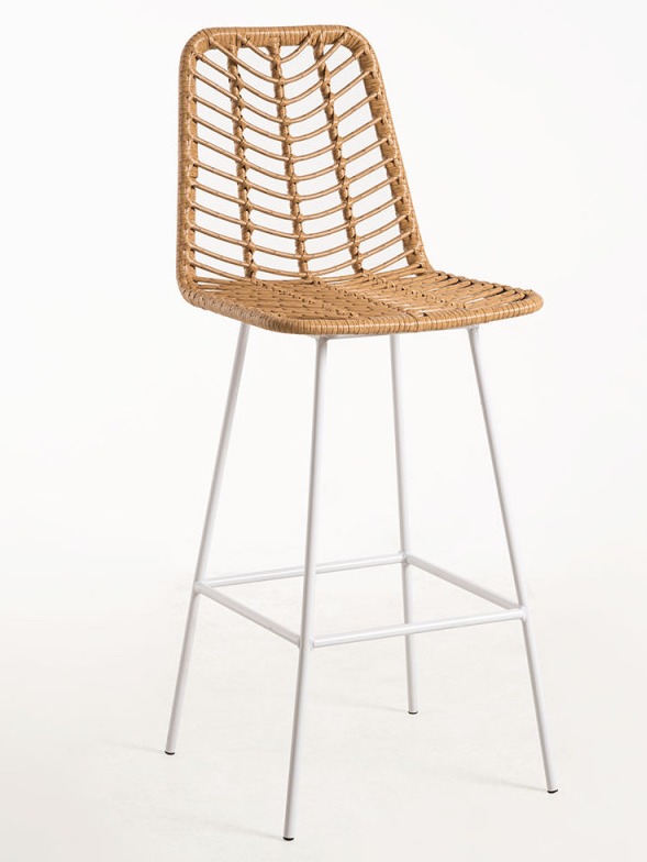 Libellé Tabouret de bar rotin naturel et acier blanc Taka 73cm