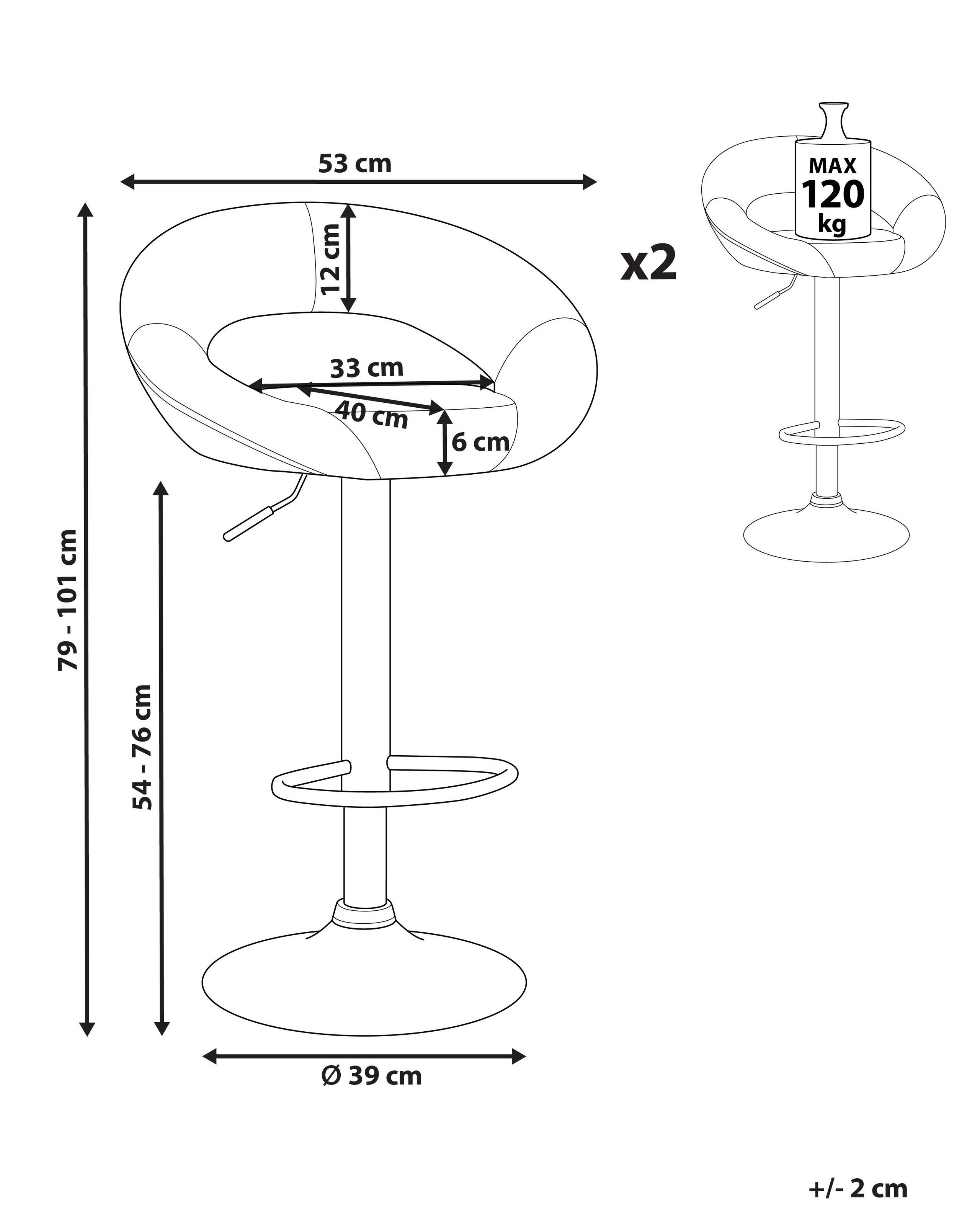 Ensemble de 2 tabourets de comptoir. Cet ensemble de tabourets de bar allie confort et design contemporain. Chaque chaise est dotée d'une assise en cuir PU de haute qualité, densément rembourrée de mousse pour un confort absolu. Le piètement en fer noir est robuste tout en apportant une touche d'élégance. La chaise pivote à 360° et se règle facilement en hauteur grâce à son mécanisme de levage à gaz. Idéale pour un îlot de cuisine ou un comptoir de bar, la chaise s'intègre sans effort dans les intérieurs modernes.