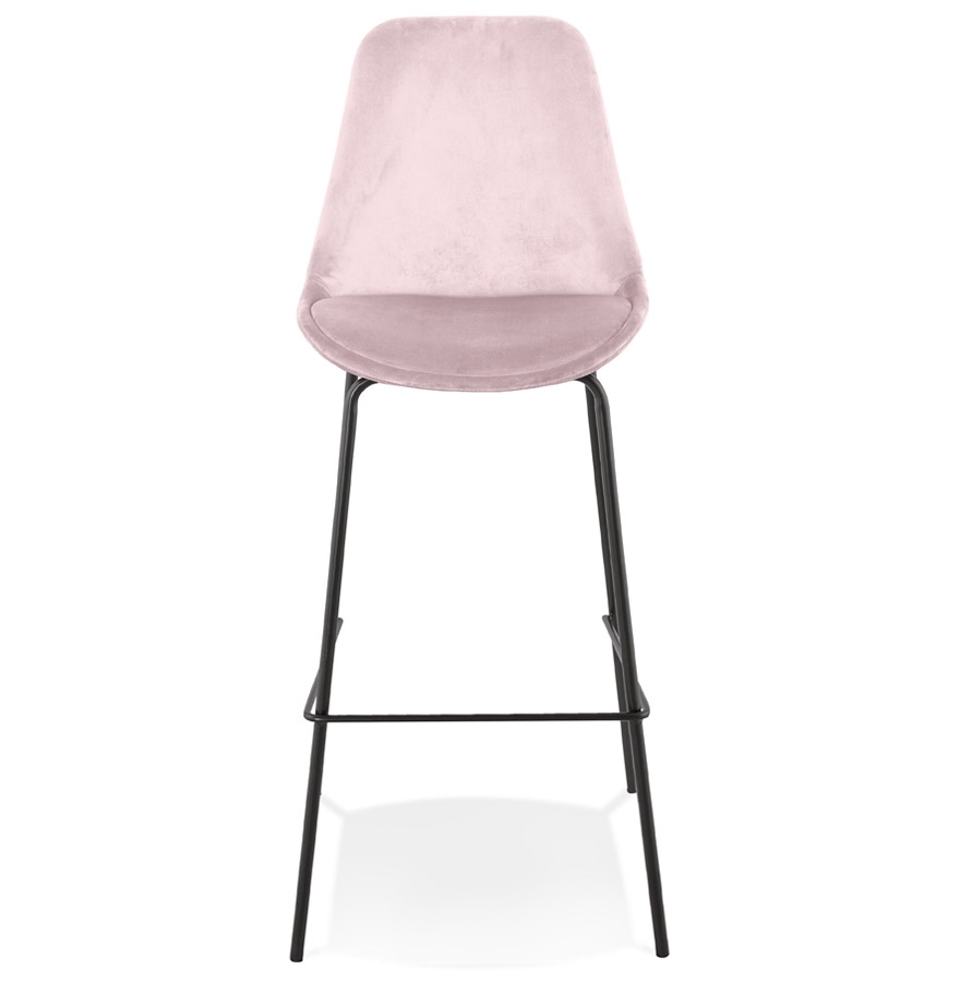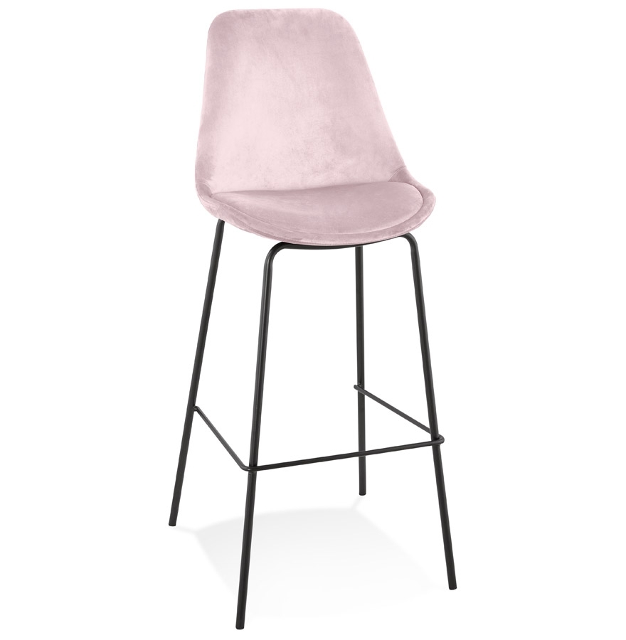 Tabouret de bar 'SPARK' en velours rose et pieds en métal noir