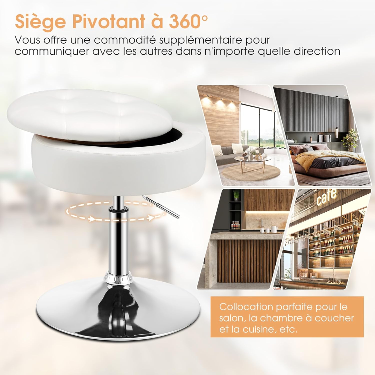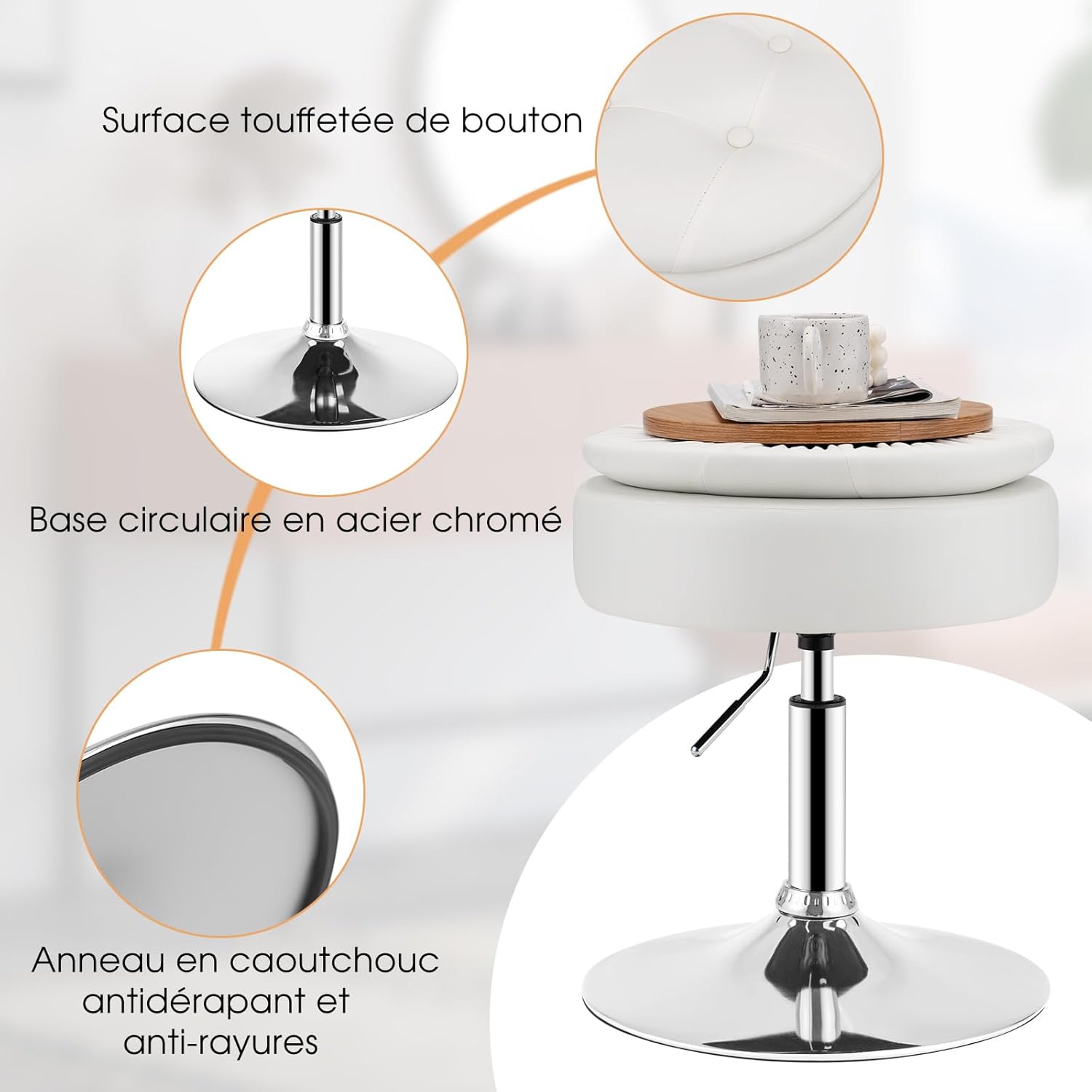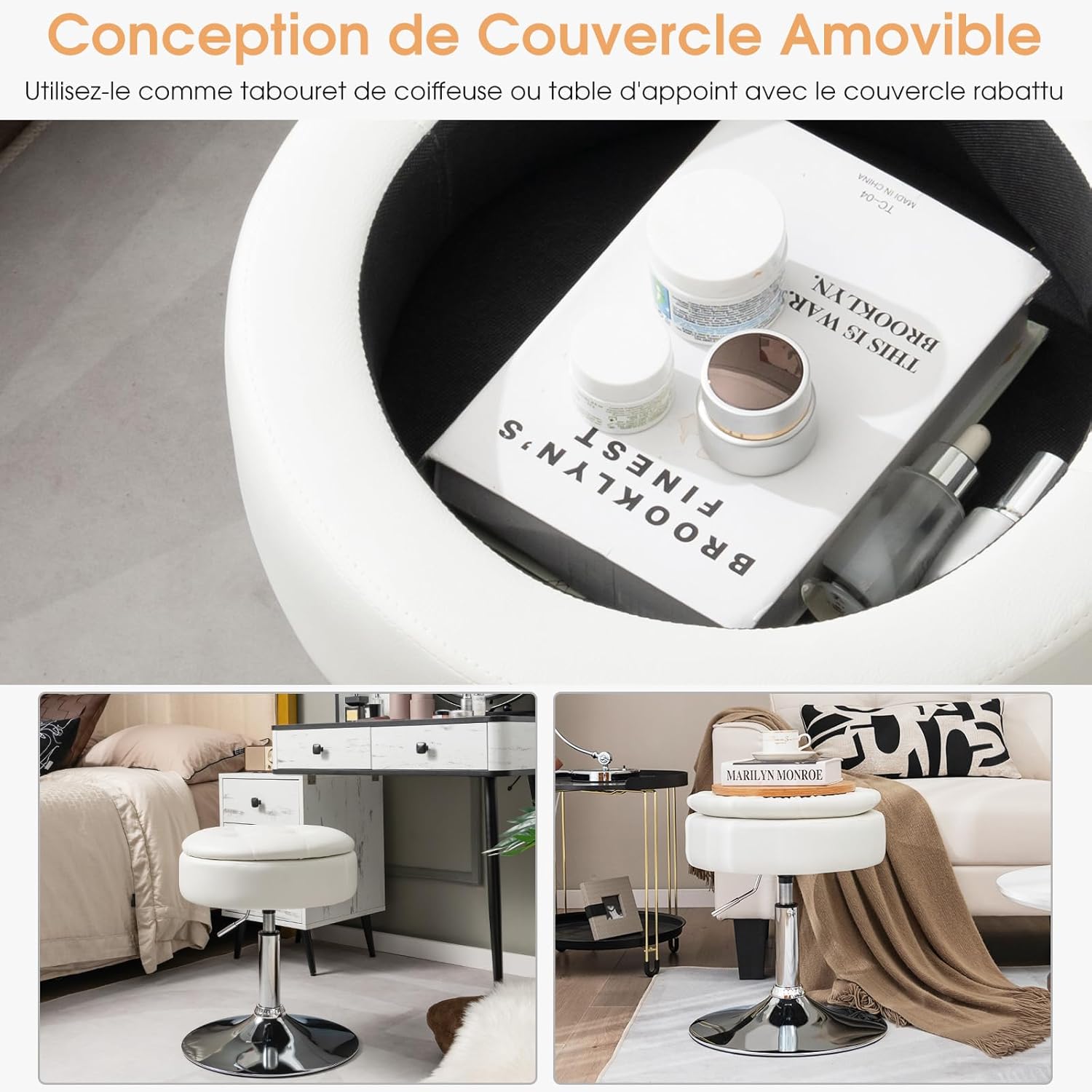 | Libellé | Tabouret de coiffeuse capitonné, 3 en 1 pouf de rangement d'appoint avec couvercle réversible, chaise de maquillage blanc |