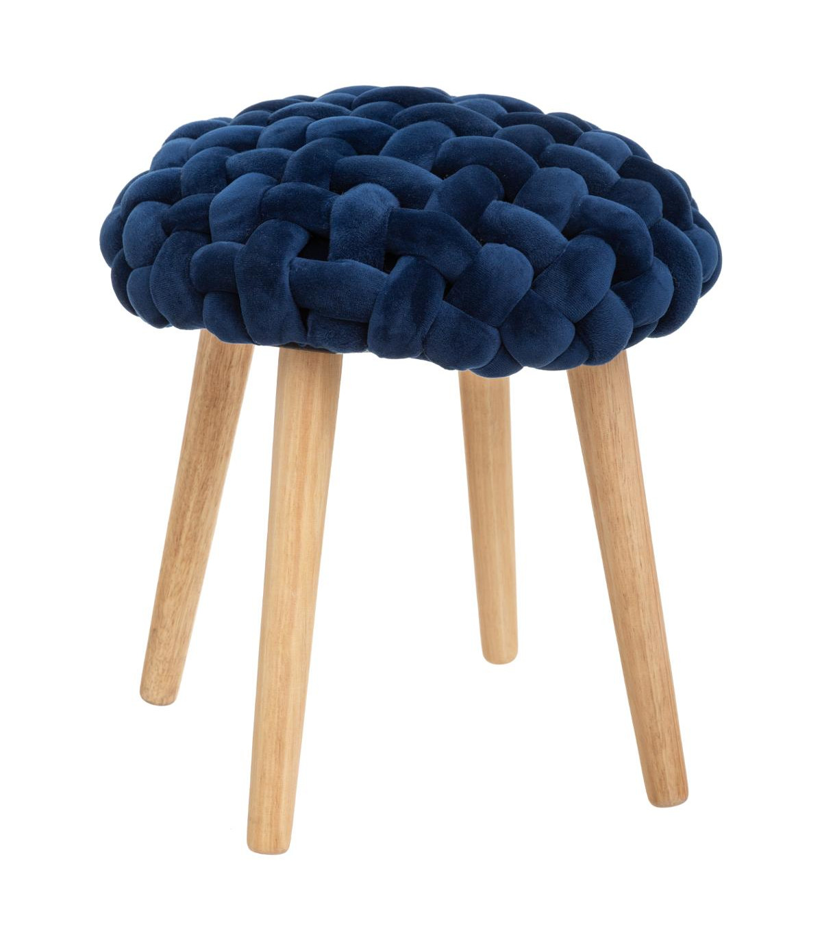 Tabouret pied en Bois et Assise Tricot Bleu H 43 cm