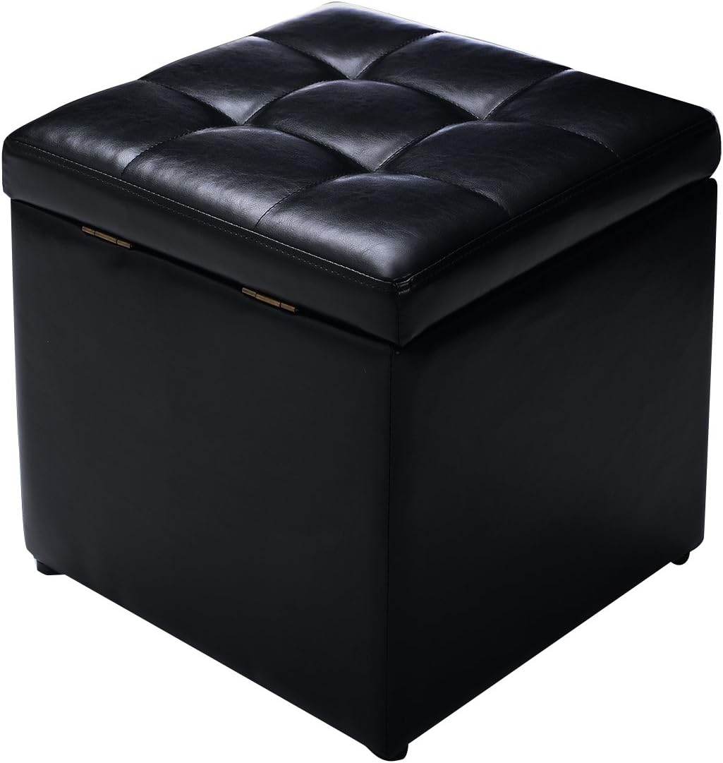 | Libellé | Tabouret pouf coffre de rangement,boite de rangement, cube siège en pu, pouf ottoman carré noir |