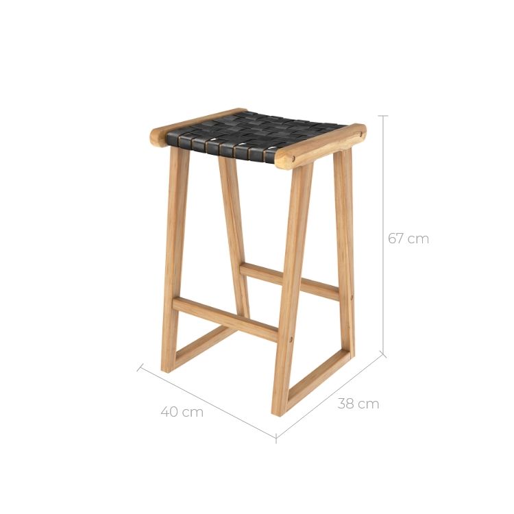 Libellé Tabouret pour îlot central 65 cm en teck et cuir tressé noir-Yuma