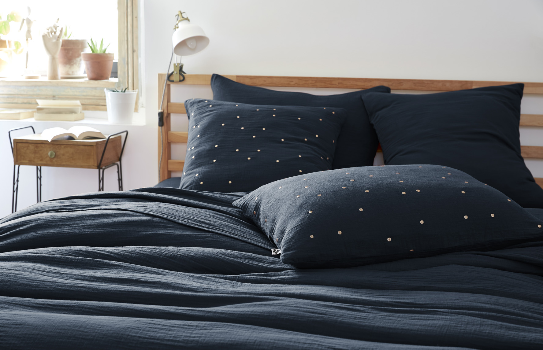 Rien que pour vous ! Gaia Chics est un linge de lit douillet en gaze de coton (125 g/m²), matière qui ne pourra que gagner en souplesse et en douceur au fil des lavages. Naturellement froissée et facile à vivre, il sera parfait au naturel pour une chambre