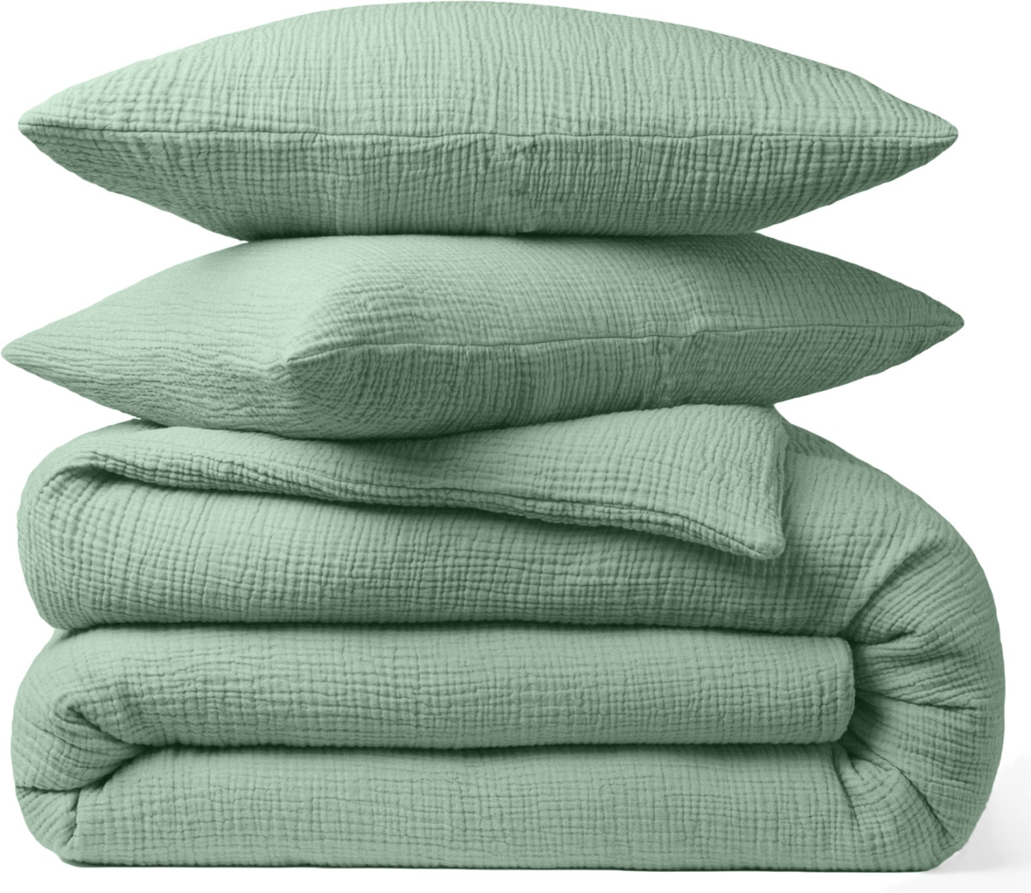 Taie d'oreiller cm gaze de coton vert givrée 65x65 cm, Pur