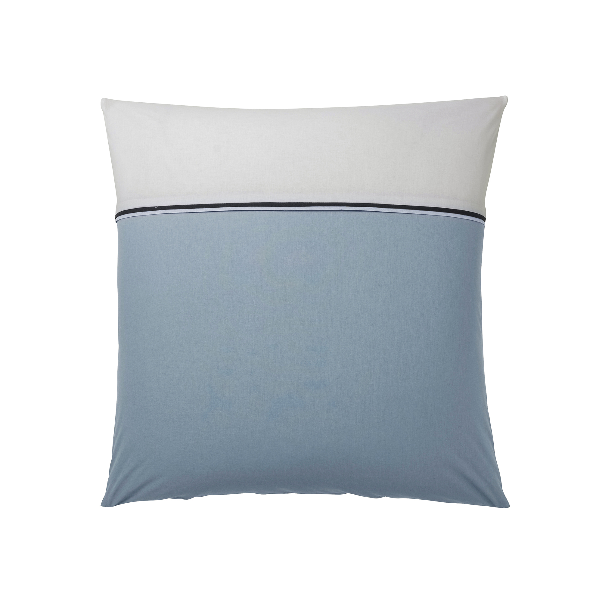 La taie d'oreiller est bicolore, les deux couleurs étant séparées par un biais noir.