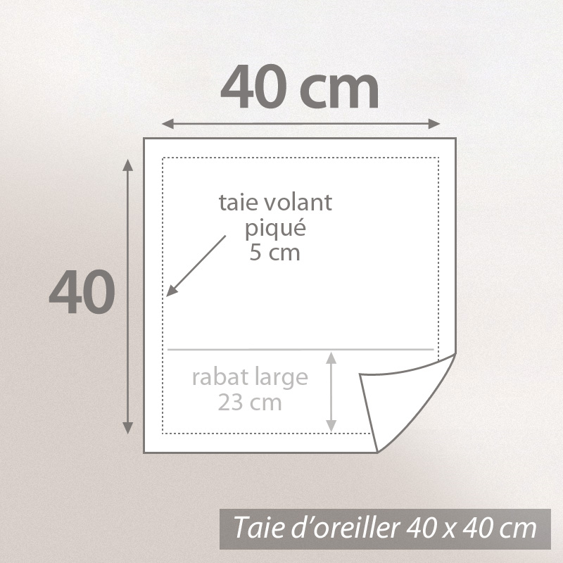 - Taie d'oreiller carré avec un volant de 5 cm sur les côtés, un large rabat interne de 23 cm pratique et confortable car dépourvu de bouton.