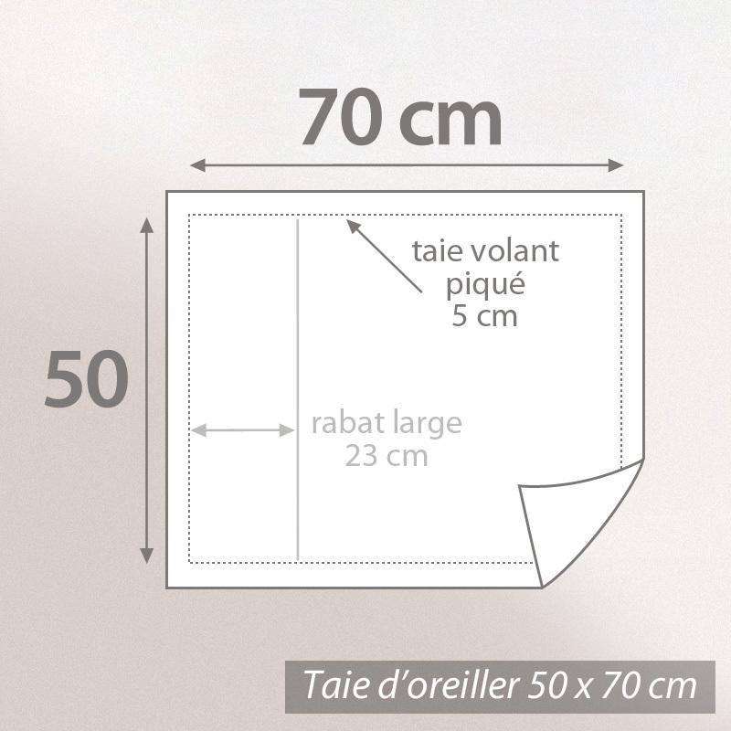 - Taie d'oreiller rectangulaire avec un volant de 5 cm sur les côtés, un large rabat interne de 23 cm pratique et confortable car dépourvu de bouton.