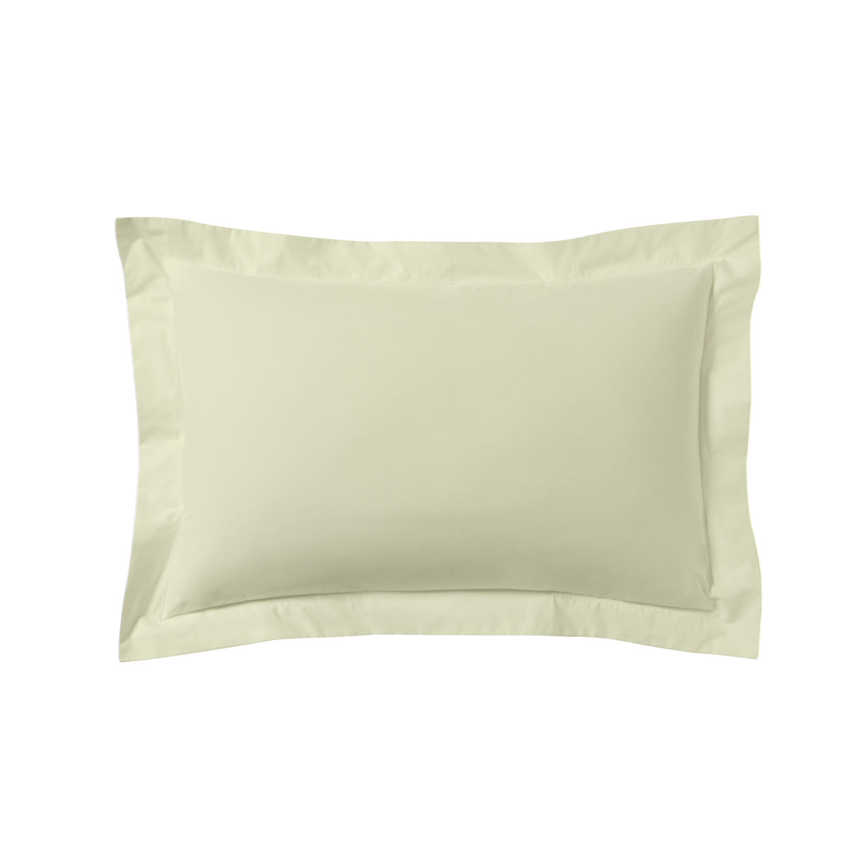 La taie d'oreiller est unie et un volant plat de 5 centimètres l'encadre.