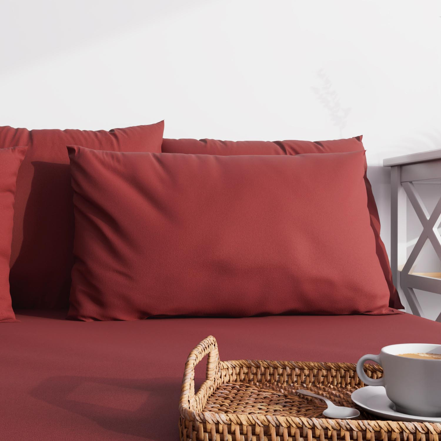 Taie d'oreiller unie carrée au colori très tendance. Entretien facile, repassage inutile et belle tenue des couleurs. Couleur: Rouge. Dimensions: 63x63 cm. Composition: 55% polyester, 45% coton. Entretien: Lavage en machine à 40 degrès.
