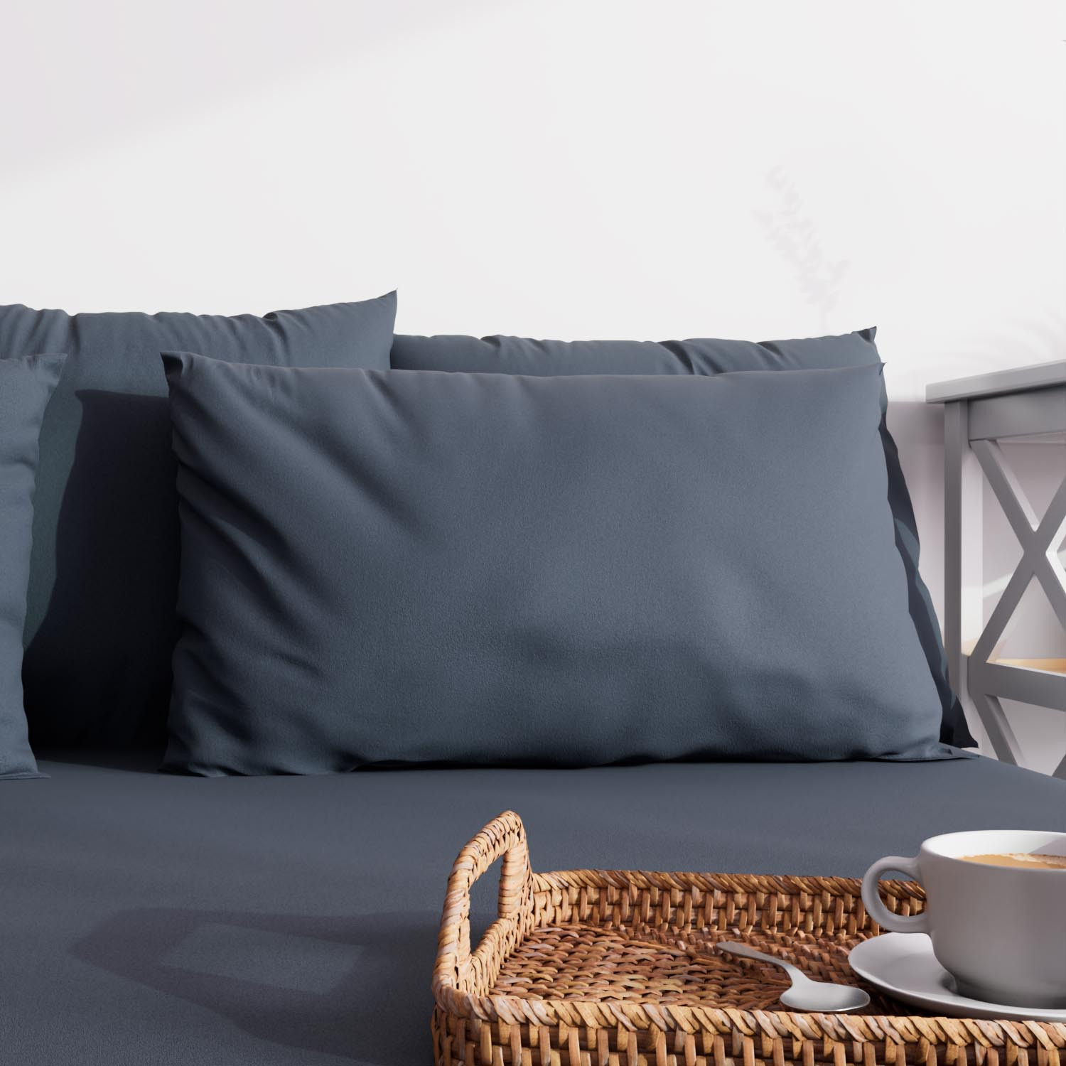 Taie d'oreiller unie carrée au colori très tendance. Entretien facile, repassage inutile et belle tenue des couleurs. Couleur: Bleu jean. Dimensions: 63x63 cm. Composition: 55% polyester, 45% coton. Entretien: Lavage en machine à 40 degrès.