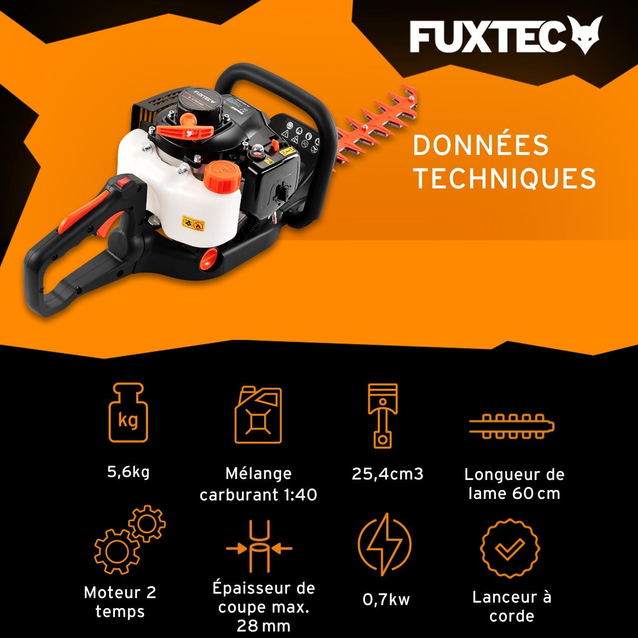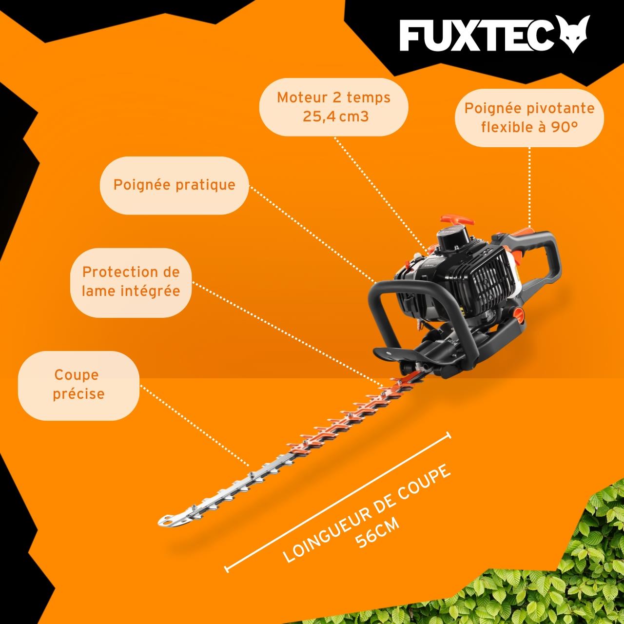 | Libellé | Taille-haies thermique FUXTEC FX-MH123ECO 2T 25,4 cm3, lame 560 mm, coupe 28 mm, ergonomique & anti-vibrations |