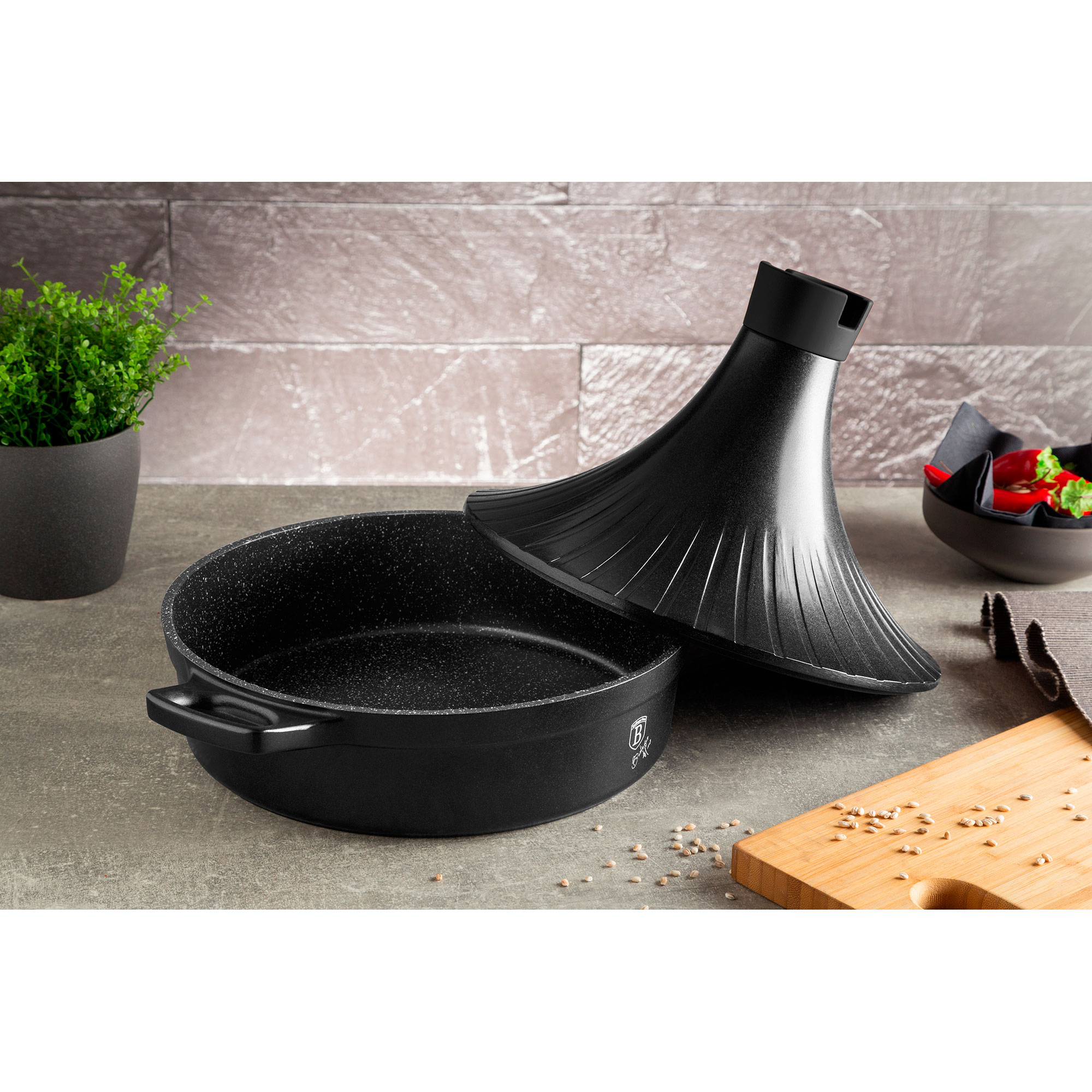 Tajine Marocain en Fonte 28cm Induction, Couvercle Conique en Céramique Noir Berlinger HausGranit Diamon