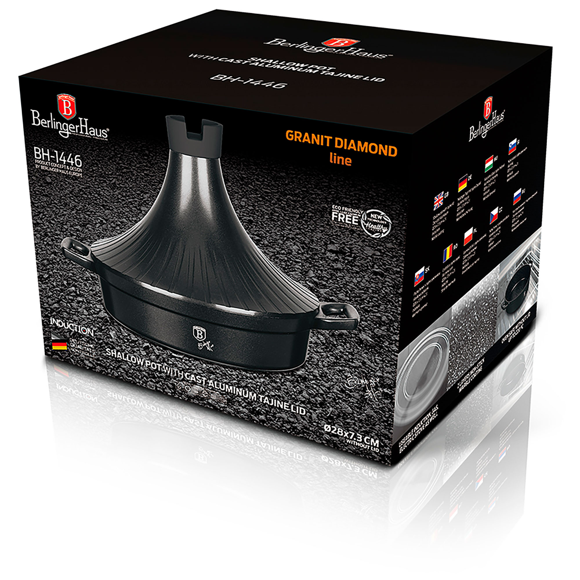 | Libellé | Tajine Marocain en Fonte 28cm Induction, Couvercle Conique en Céramique Noir Berlinger HausGranit Diamond |